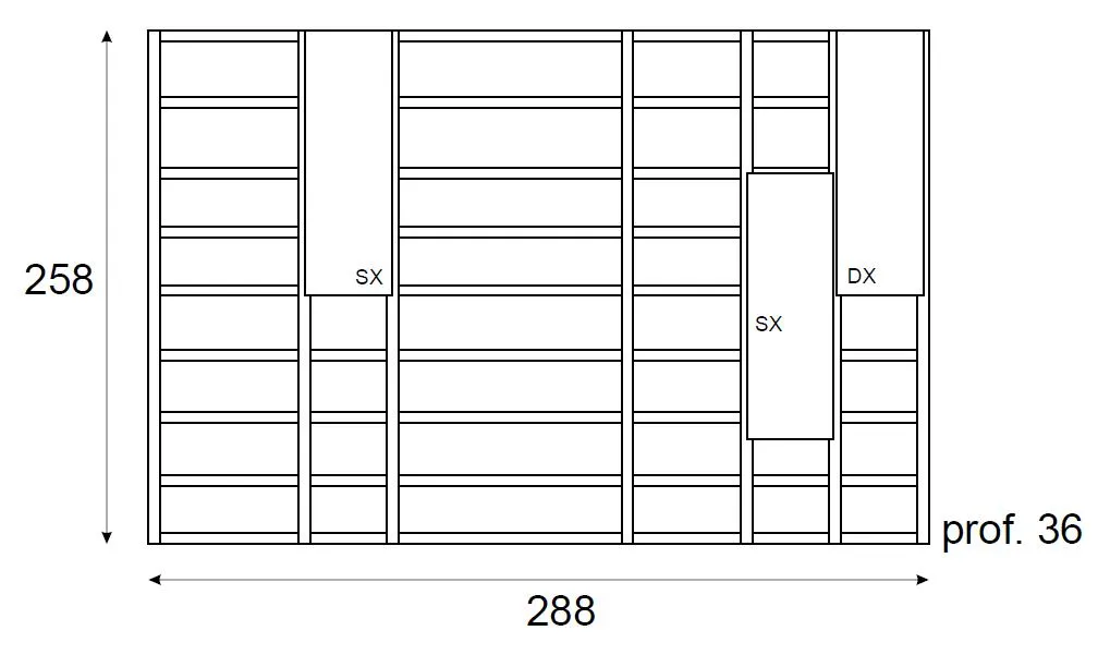 Struttura e ripiani in spessore 3 cm., sportelli con apertura push&pull