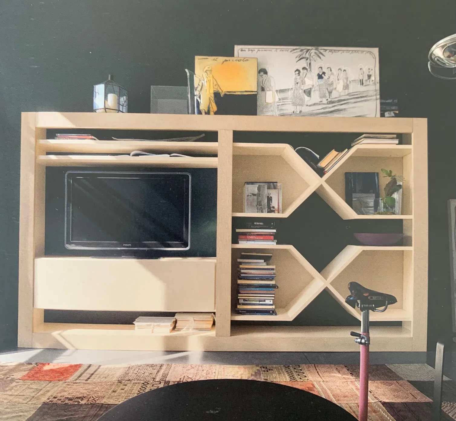 Libreria MARCHETTI MAISON Modello Maestrale latte Libreria porta T.V. realizzata in legno massello con le seguenti misure: cm 330 x H.190 x P.36 . Questa parete libreria è caratterizzata dalla sua unica artigianalita',sia nel design che nella qualità dei suoi materiali.È infatti realizzata in legno massello laccato burro ed impreziosita da un portale perimetrale in legno massello di rovere laccato latte a poro aperto,stessa finitura anche per gli schienali.Il vano dedicato alla T.V. è di cm.147,nel sottostante spazio è presente un contenitore con apertura a ribalta interamente laccato burro opaco.Un mobile che unisce tradizione e al tempo stesso modernità e leggerezza, un connubio per un gradevole impatto estetico. ULTIMO MOBILE DISPONIBILE !!! Iva Inclusa - Trasporto Escluso -
