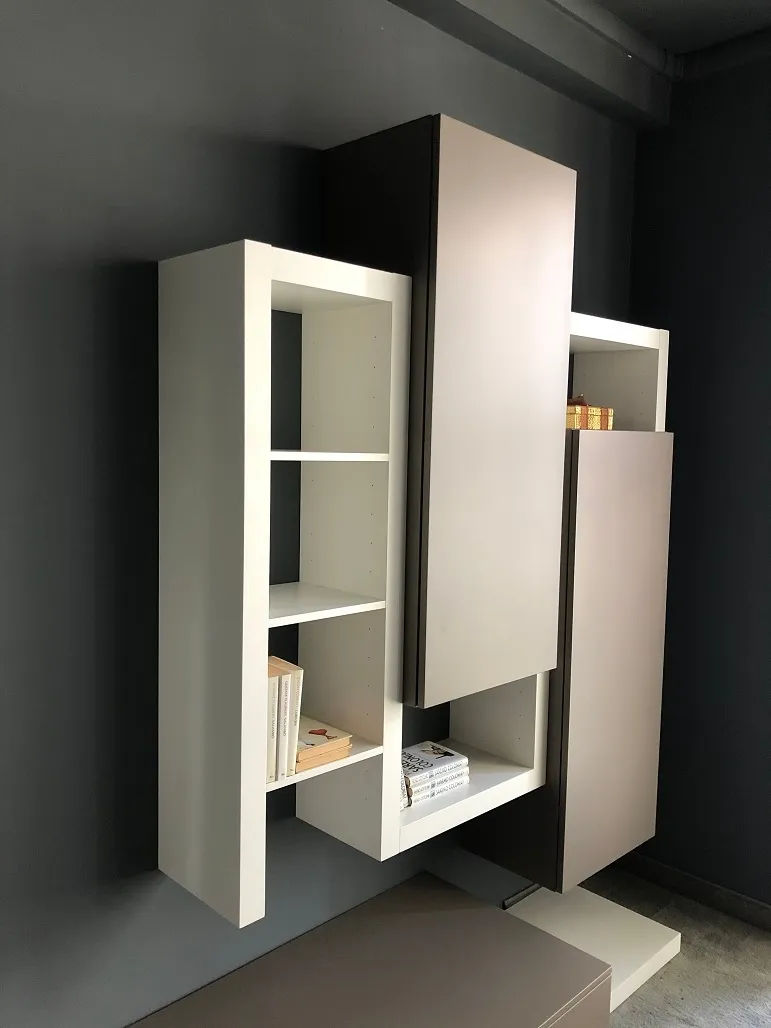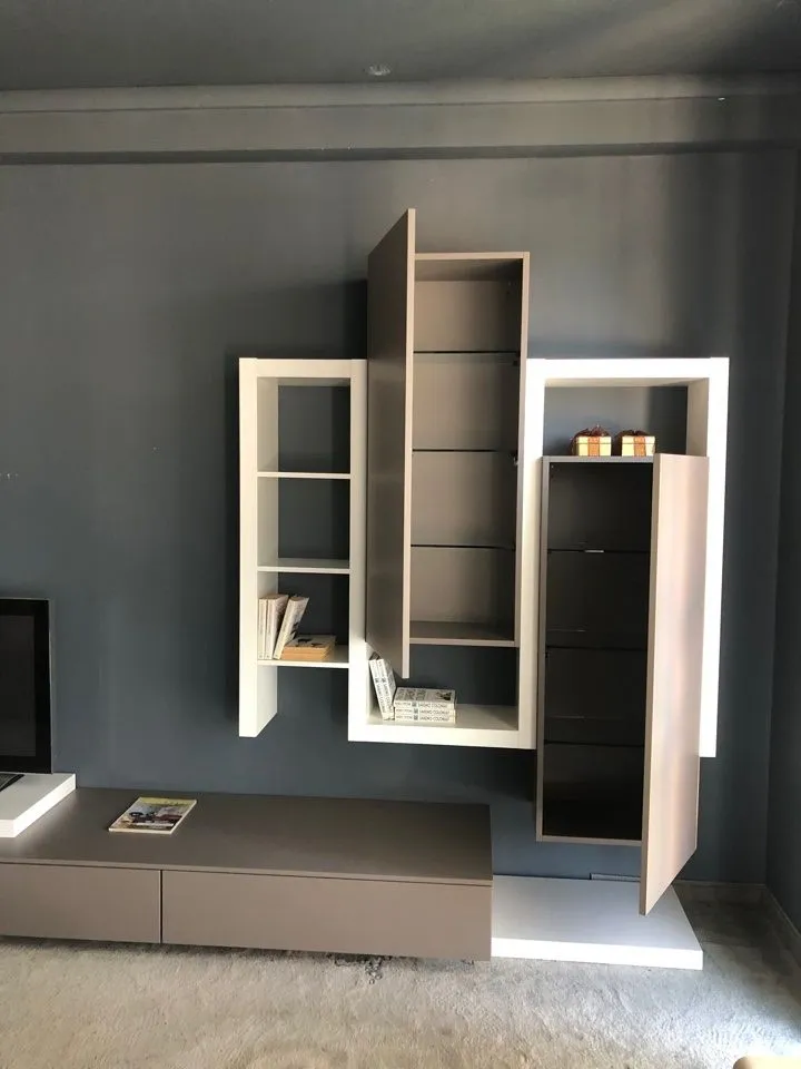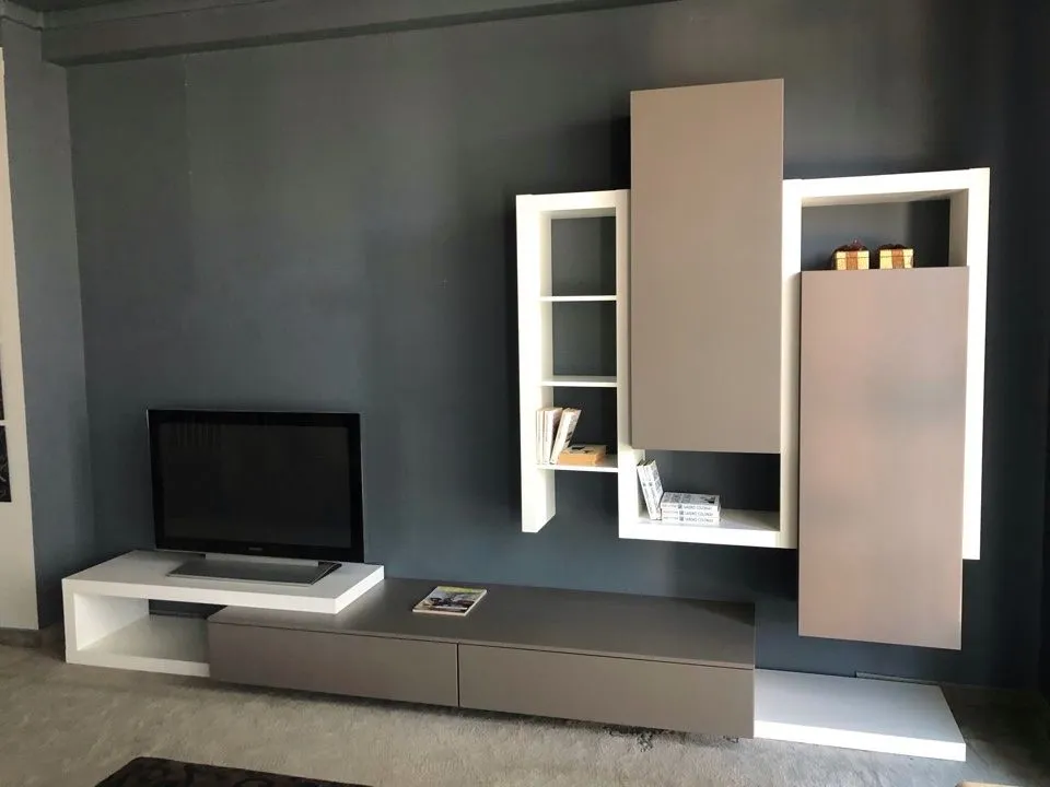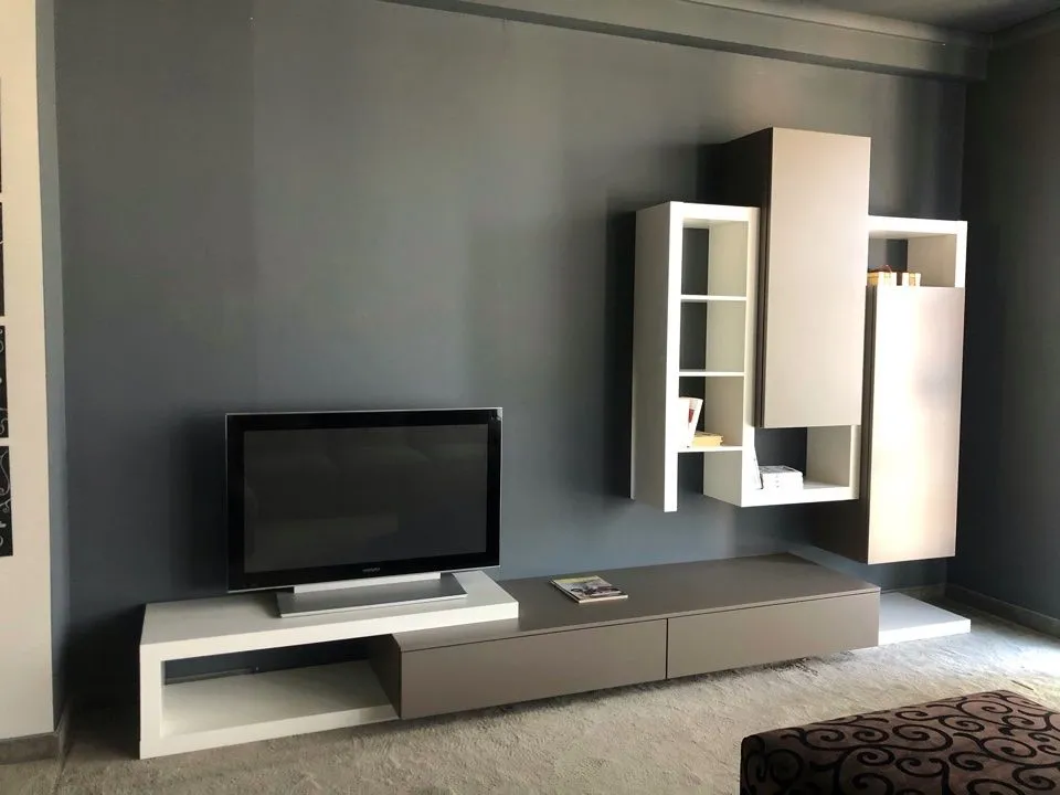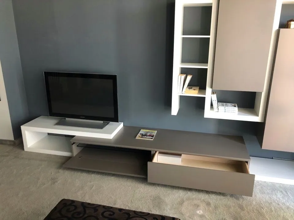 Soggiorno modello Side System di Fimar in offerta, scontato del 74 % al prezzo di 2.000,00 euro. Parete soggiorno moderna composta da due basi, una con anta a ribalta e una base a cestone, appoggiate su una pedana. Le basi sono laccate opache cemento , con apertura push-pull per base anta ribalta e apertura dal basso per la base cestone. Gli elementi che caratterizzano questo soggiorno moderno sono le mensole verticali con un forte spessore di 6 centimetri ,che creano un "serpentone" racchiudendo due pensili verticali e delle mensole. I pensili sono laccati opachi cemento, e hanno apertura push-pull, mentre le mensole sono laccate opache bianco. Soggiorno design libero, flessibile e movimentato, un gioco tra spazi pieni e spazi vuoti. DIMENSIONI: lunghezza variabile da 390 a 420 centimetri, altezza media 218 centimetri. La composizione può essere modificabile. Parete attrezzata moderna esposta all'interno del nostro show room a Paina di Giussano, in provincia di Monza e Brianza, a pochi chilometri di distanza da Milano. Per maggiori informazioni non esitate a contattarci, oppure compilate il form sottostante, vi risponderemo nel più breve tempo possibile.