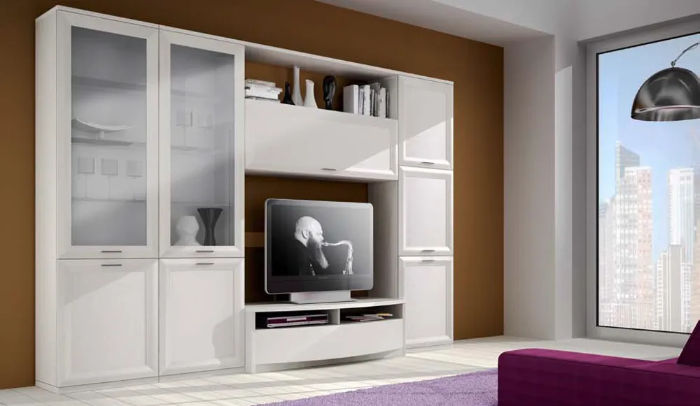 Mobile componibile per la zona-giorno mod.Jazz 13 proposto nella versione Frassinato Bianco con ante-telaio.E' completo di :2/Colonne-basi da cm.60 larghezza x cm.38 profondità x cm.215 altezza con ante superiori con vetro.1/Colonna-base da cm.60 larghezza x cm.38 profondità x cm.215 altezza con ante piene con telaio.1/Base con cassetti e vani a giorno da cm.180 lunghezza x cm.60 profondità x cm.42,5 altezza.1/Pensile da cm.180 lunghezza x cm.37,5 profondità x cm.35,5 altezza con apertura a vasistas.1/Top-superiore da cm.300 lunghezza x cm.38 profondità x cm.2,5 spessore.L'ingombro della composizione è di cm.300 lunghezza x cm.38/60 Profondità x cm.218 altezza.Viene proposta ad un prezzo decisamente interessante con lo sconto del 40%. Per gli acquisti effettuati entro il 15 Giugno,verrà applicato uno sconto ulteriore del 5%.Per qualsiasi informazione potete contattarci