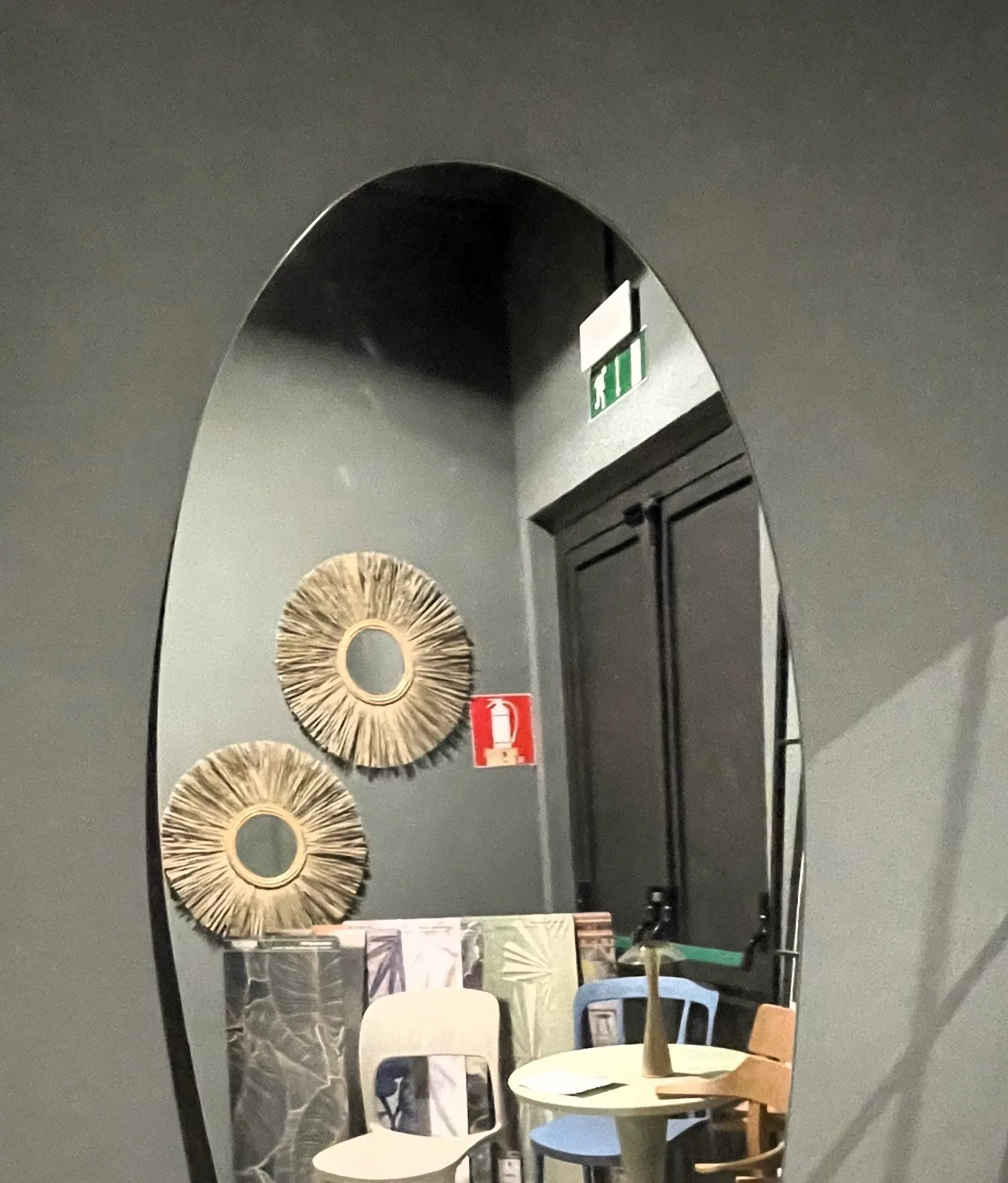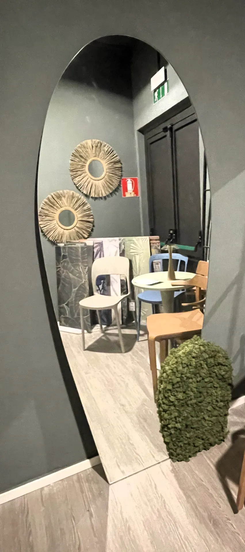 Lo specchio Bonaldo Muschio è un elemento d'arredo che combina eleganza e originalità. Con la sua forma slanciata, culminante in una sommità ovale, questo specchio non solo amplifica la percezione dello spazio, ma aggiunge anche un tocco di raffinatezza a qualsiasi ambiente. Progettato per essere poggiato a terra, diventa immediatamente il protagonista della stanza, riflettendo la luce con armonia e discrezione.