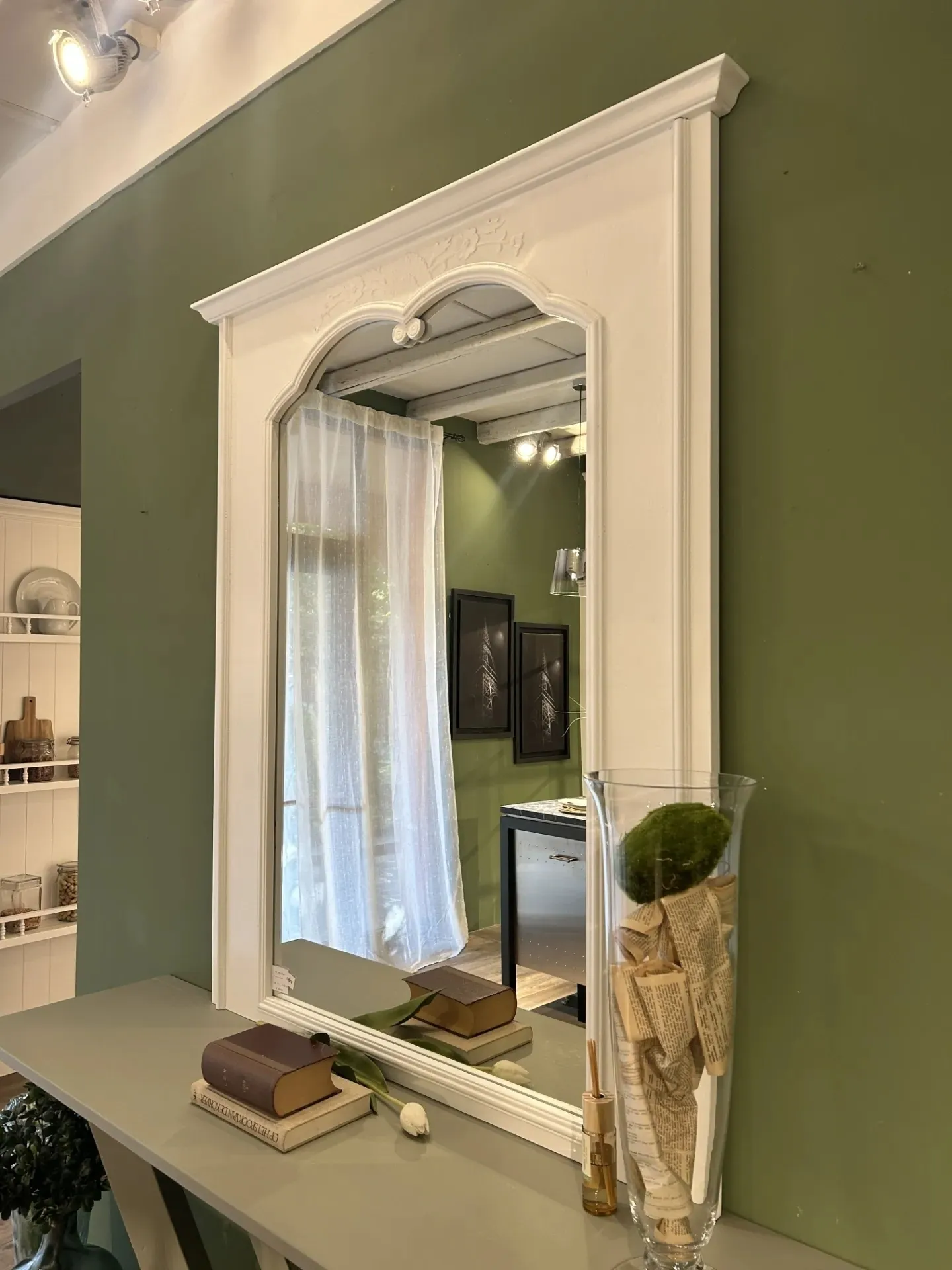 Grande specchio laccato bianco cm 132 h 153 sp 7 cm . Unico pezzo disponibile