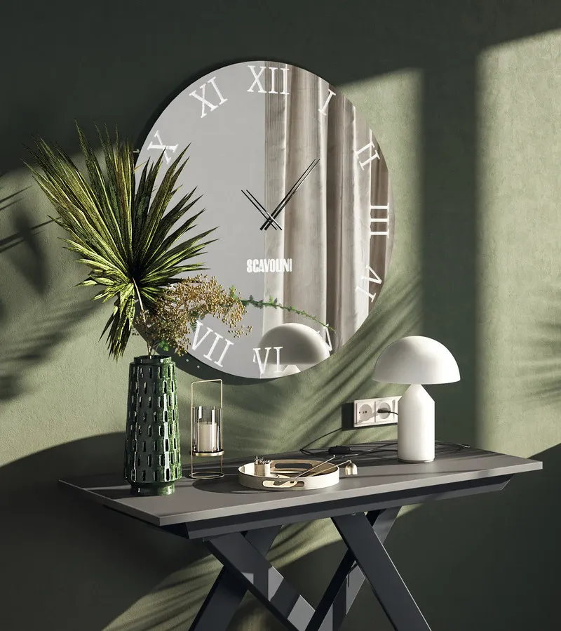 Posizionato sopra una consolle o in un ingresso, lo Specchio O'Clock diventa il protagonista indiscusso della stanza. La sua capacità di fungere sia da specchio che da orologio lo rende particolarmente versatile e adatto a diverse esigenze d'arredo.