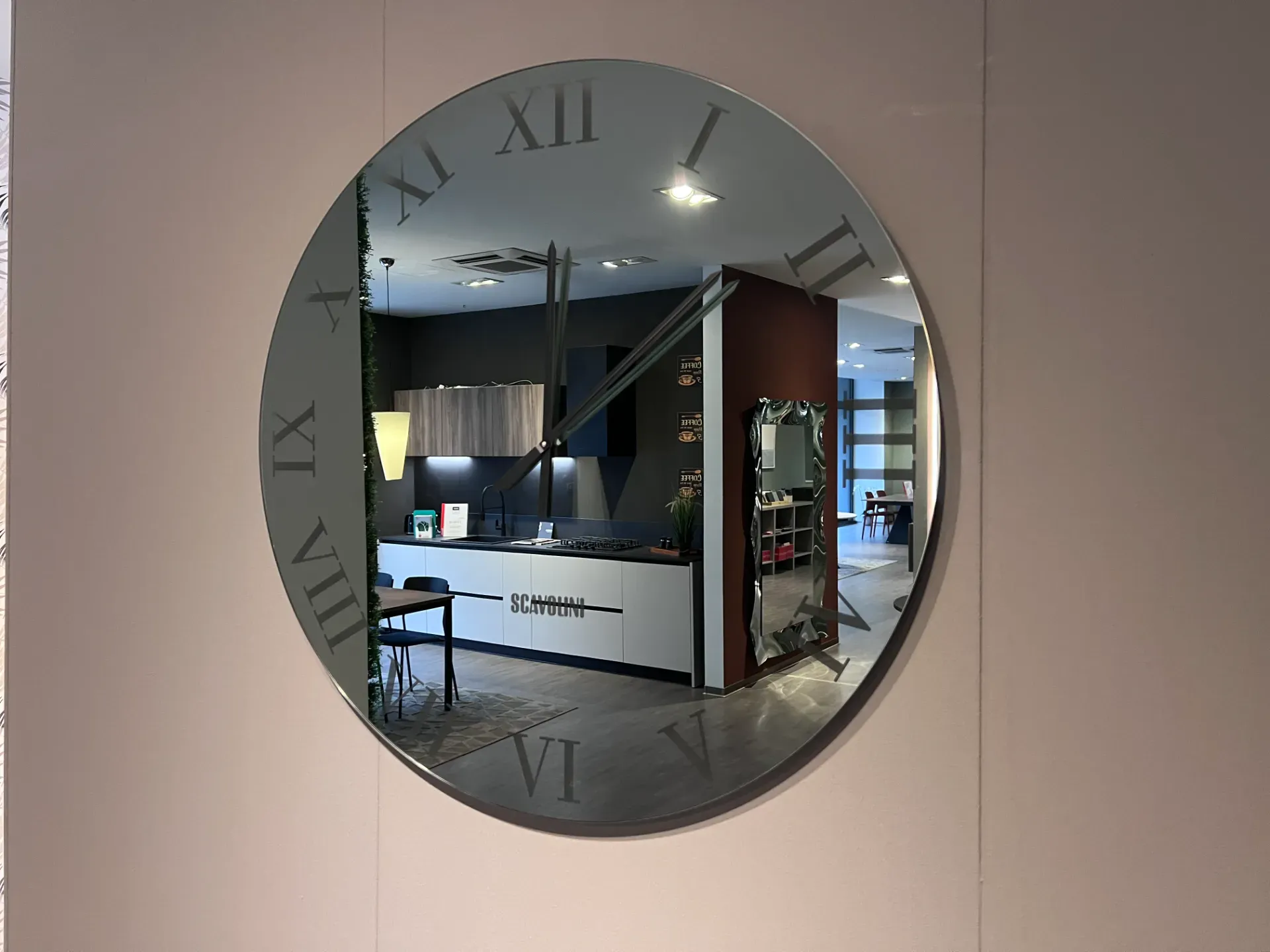 Lo Specchio O'Clock di Scavolini è un elemento d'arredo che unisce funzionalità e design in modo impeccabile. Realizzato in specchio fumé, questo orologio specchiato non è solo un pratico strumento per tenere il tempo, ma anche un raffinato complemento che arricchisce qualsiasi ambiente con la sua presenza elegante.