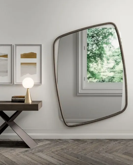 Il materiale determina le doti pratiche ed estetiche di ogni specchio; in una grande varietà di materiali di grande qualità selezionati dal noto e conosciuto brand, questa proposta è totalmente realizzata in altro.