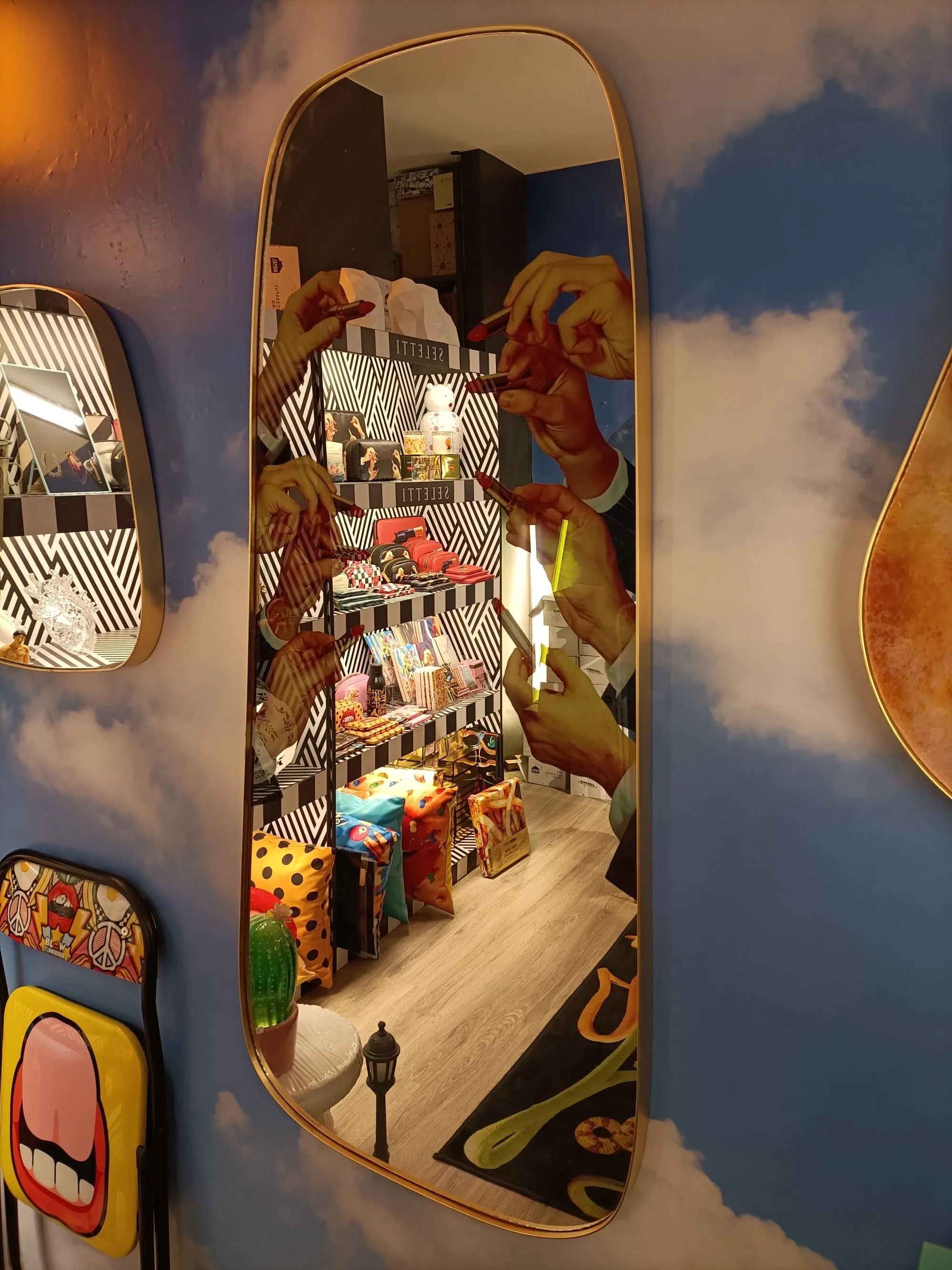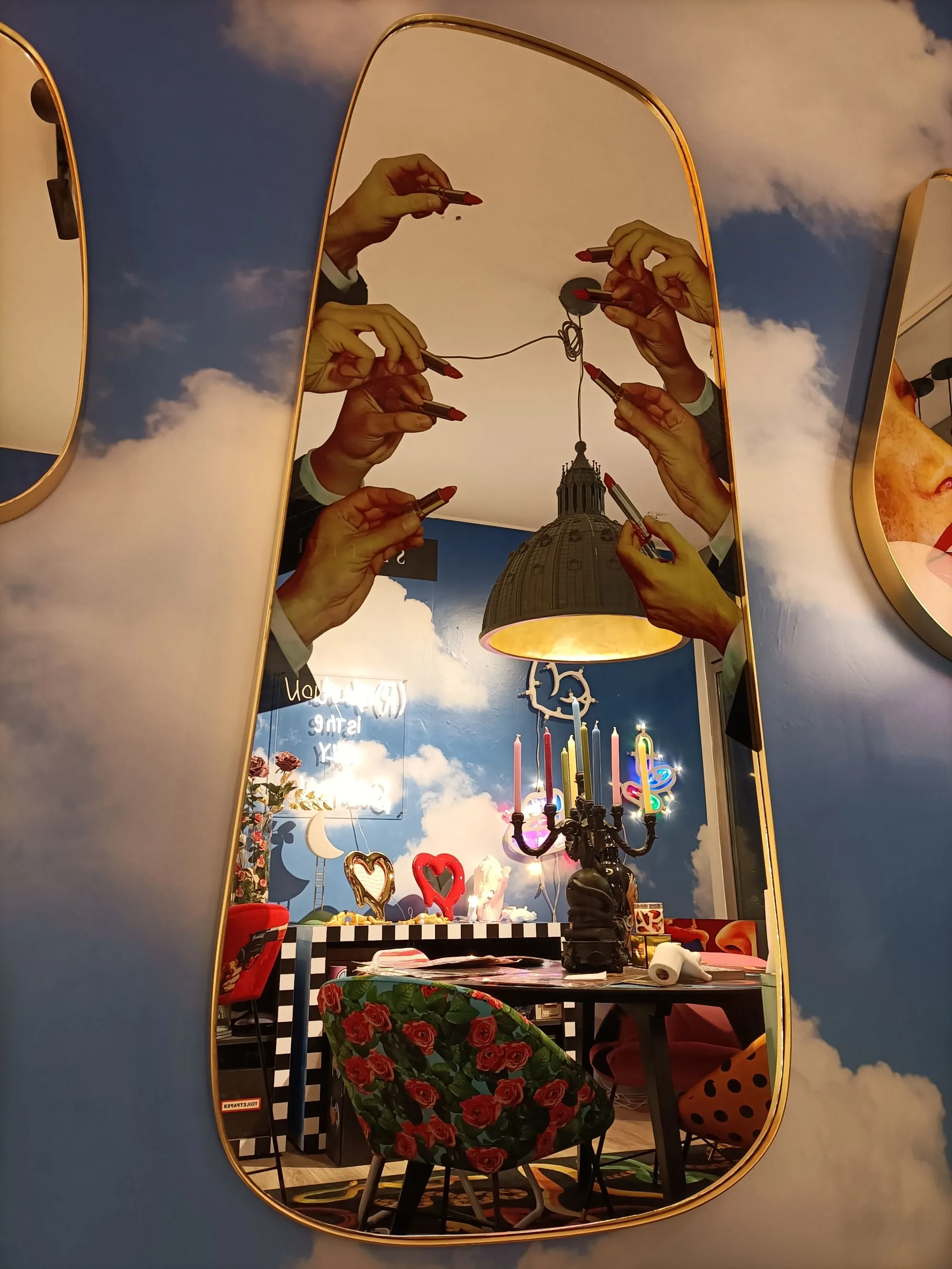 Uno specchio impreziosito da uno degli irriverenti design di Toiletpaper. Il suo riflesso ti renderà il protagonista di un mondo unico, colorato e originale.