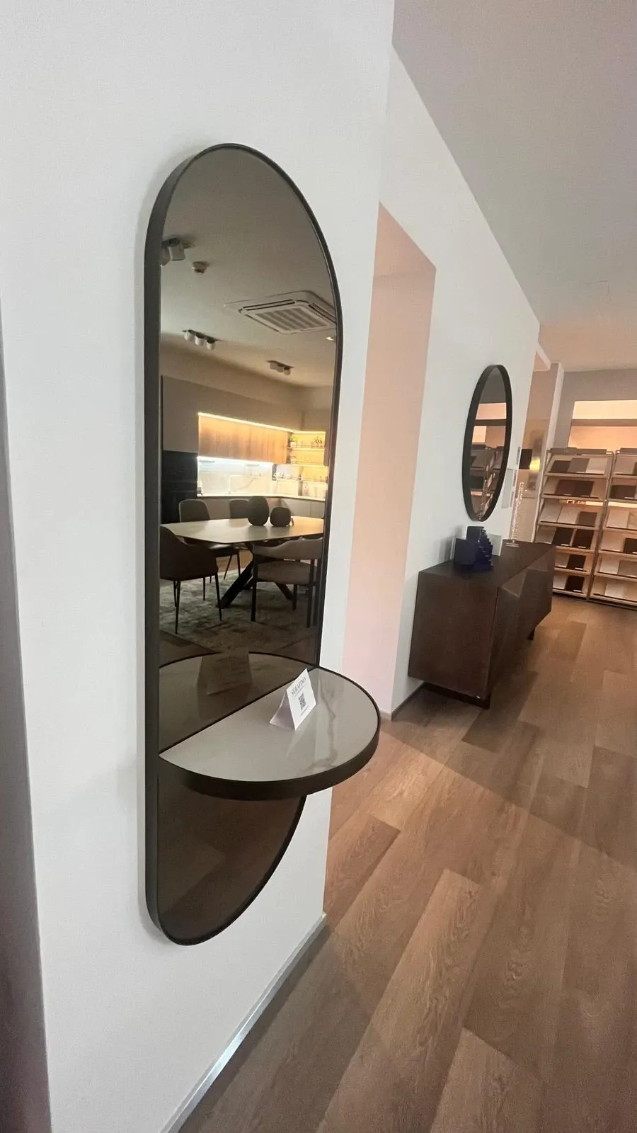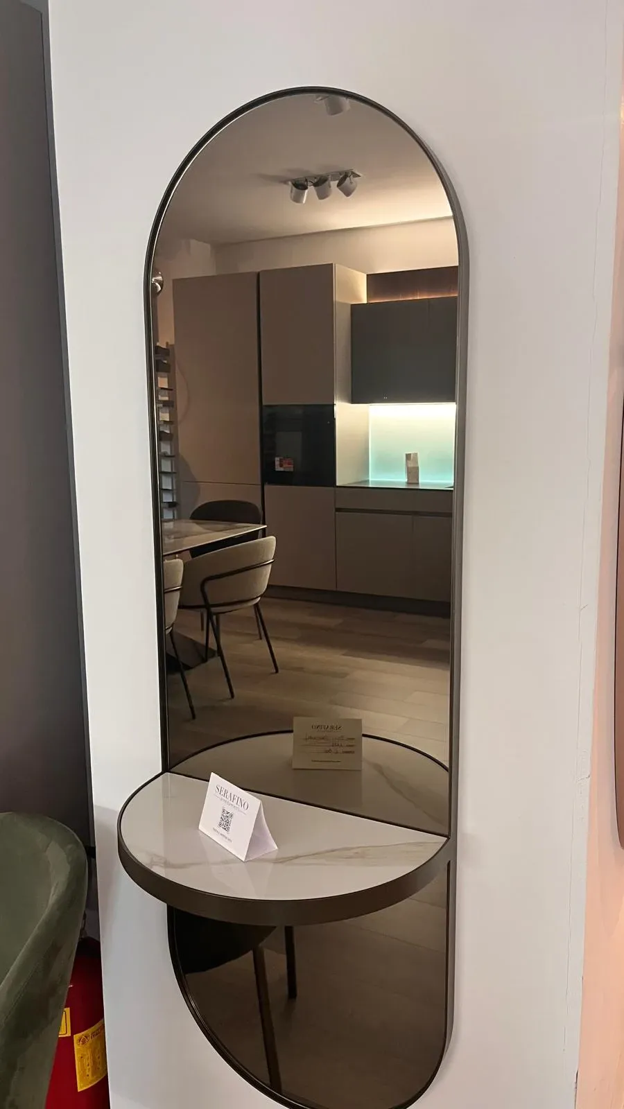Design minimalista per esaltare i volumi di qualsiasi parete e spazio, impreziosito dalla raffinata combinazione delle finiture proposte. La mensola portaoggetti può diventare un comodo svuotatasche en pendant con l effetto bronzo, argento o fumè della superficie specchiante.