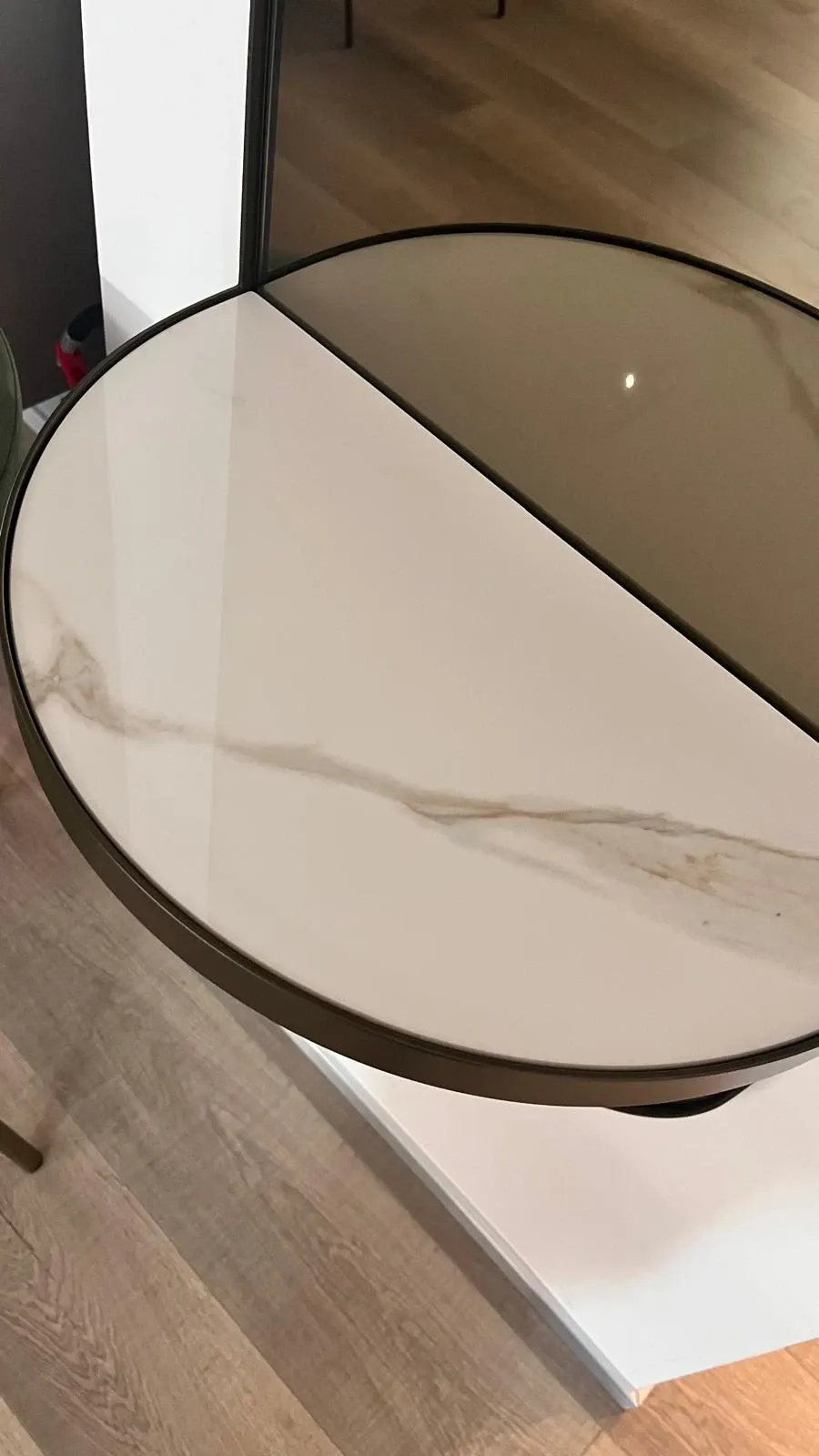 SPECCHIERA PILL DI BONTEMPI. TELAIO IN METALLO E RIPIANO IN CERAMICA CALACATTA. 45 X 140 P27.5
