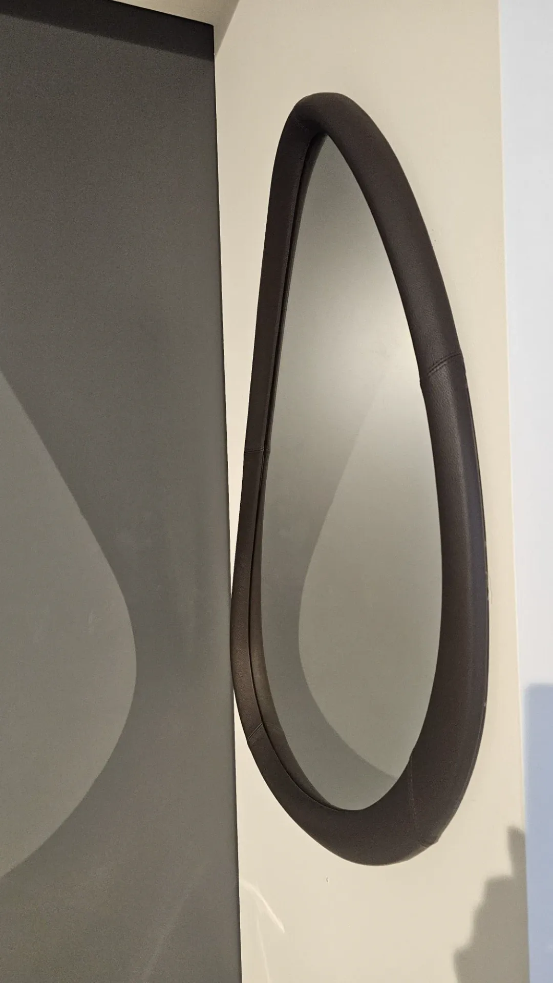 Specchiera modello SOHO con cornice in POLIURETANO PELLE MOKA cm. 93x64x3sp. , si può appendere orizzontale e verticale