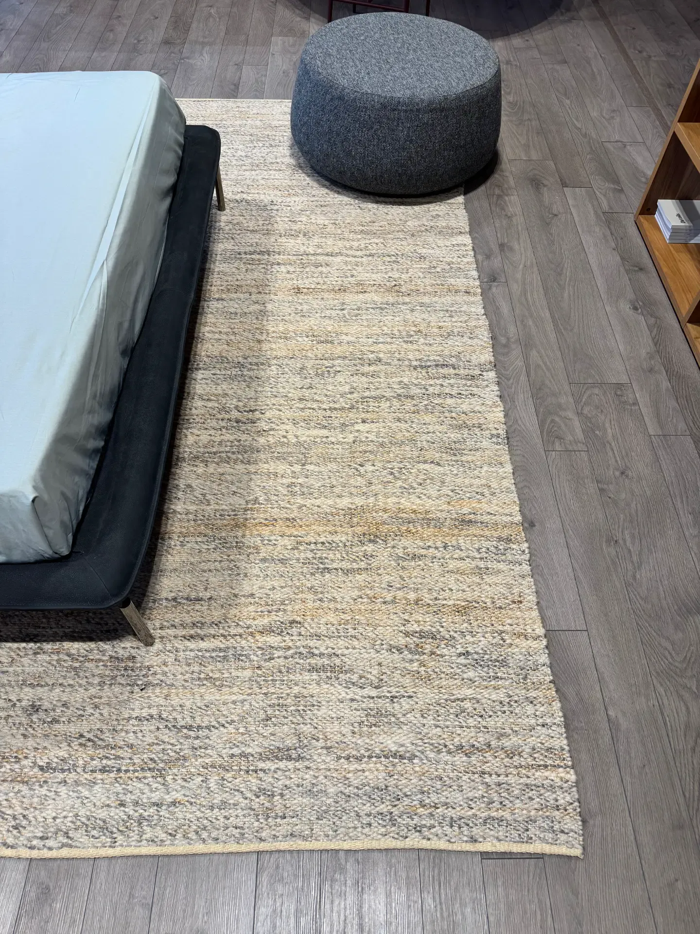 Tappeto Cala di Kuatro scontato a 691,00 euro. Tappeto di fibre naturali, contenente filamenti di lana, juta e cotone. Tappeto moderno realizzato con un mix di filamenti sui toni del sabbia, grigio e panna. Tappeto di design che combina la morbidezza della lana con la freschezza del cotone, rendendolo ideale per interni come soggiorni, sale da pranzo o camere da letto. Dimensioni: lunghezza 300, profondità 200 centimetri. Complemento d'arredo che potrete vedere all'interno della nostra esposizione a Giussano, in provincia di Monza e Brianza, a pochi chilometri di distanza da Milano e da Como. Per qualsiasi informazione non esitate a contattarci.