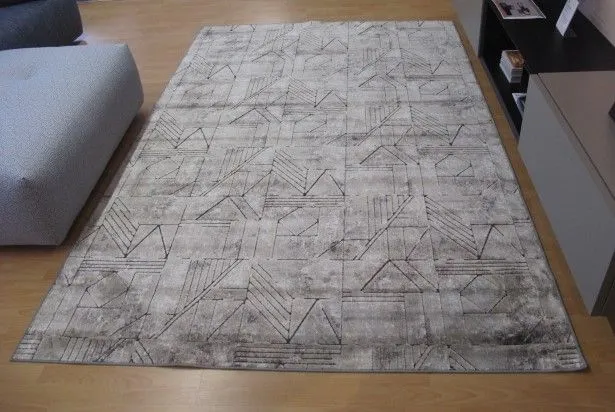 TAPPETO MODERNO E CONTEMPORANEO, sembra riprodurre una roccia antica sui cui gli uomini sono andati ad incidere l'alfabeto runico. I colori sono tenui e ricordano una parete rocciosa. Semplice ed elegante.