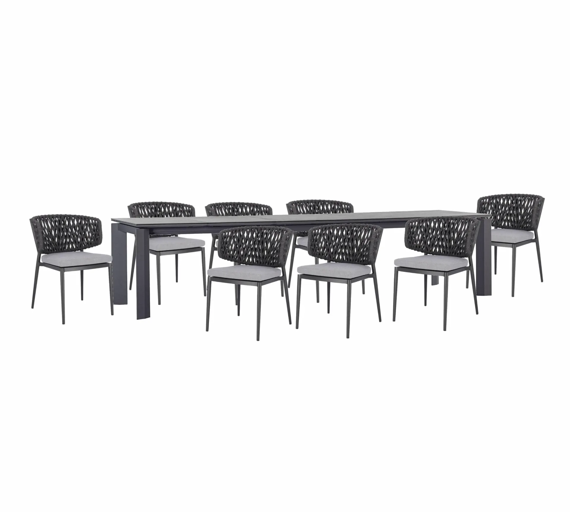 Tavolo Otavio antracite 220-280-340 con 8 sedie Noelia - Bizzotto