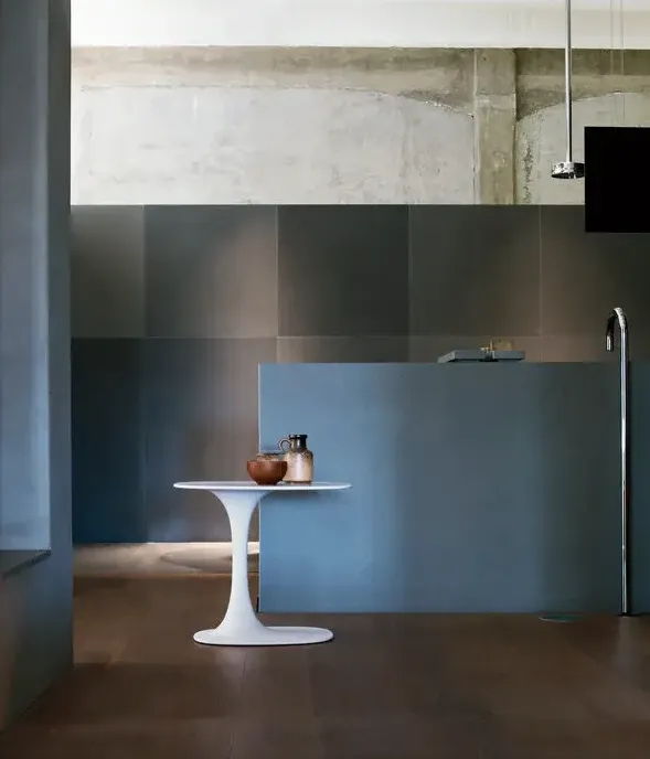 Il materiale è tecnologicamente avanzato lo compone una speciale miscela in Cristalplant bianco che assicura l utilizzo in indoor così come in outdoor. La particolare superficie del materiale ha un effetto soft touch, simile alla pietra naturale.