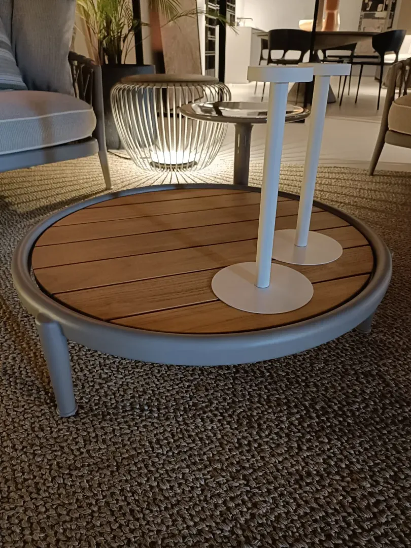 Il tavolino Erica di B&B Italia è un complemento outdoor raffinato e versatile, pensato per completare con eleganza gli spazi esterni contemporanei. Le sue linee leggere e il design essenziale riflettono l equilibrio perfetto tra estetica e funzionalità, rendendolo ideale per terrazze, giardini e aree lounge. Realizzato con materiali di alta qualità, il tavolino Erica è progettato per resistere agli agenti atmosferici, garantendo durabilità e prestazioni elevate nel tempo. La struttura slanciata e il piano d appoggio ben proporzionato lo rendono pratico e al tempo stesso sofisticato, perfetto accanto a divani, poltrone e chaise longue della collezione Erica. diametro 80 cm