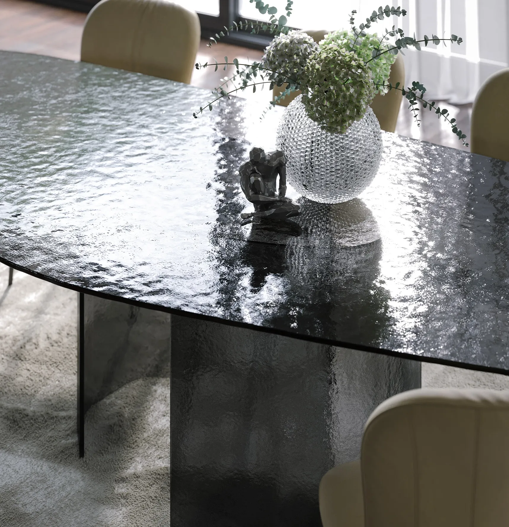 Grazie alla gamma di tavoli di forme originali e di grande personalità potrai arredare alla perfezione, in modo veloce ed accattivante, gli ambienti interni seguendo il tuo gusto personale. In negozio proponiamo una grande varietà di tavoli originali, come questo modello Tonin Casa sagomato, che danno la possibilità di arredare gli ambienti interni di molteplici dimensioni, creando particolari atmosfere di relax, accattivanti e accoglienti. I locali interni di ogni tipo occorre che siano organizzati con una certa logica, affinchè i pezzi di arredo ottimizzino lo spazio senza essere d'ingombro: perciò la scelta diviene spesso difficoltosa e si rischia di rinunciare all'aspetto estetico piuttosto che pratico; noi sappiamo bene che per te è fondamentale avere a disposizione una grande varietà di molteplici versioni di tavoli, tra cui anche il modello fisso qui disponibile, pensato per rispondere alle richieste di stile e spazio individuali. Per il tavolo Tonin Casa Fisso Ablos, è disponibile un piano di alta qualità realizzato in vetro, pensato per ultimare esteticamente ambienti domestici di qualunque stile assicurandoti anche di avere un piano d'appoggio multifunzionale e sempre disponibile; questo materiale di grande personalità sarà capace di valorizzare il tuo soggiorno o la tua zona cucina seguendo il tuo gusto personale. Che tu abbia intenzione di collocare il tavolo Sagomato Ablos nel soggiorno o nella zona cucina, esso si rivelerà presenza caratterizzante dell'ambiente: grazie alle linee decise della sua struttura con basamento centrale, ultimerai gli ambienti interni anche esteticamente. La lunghezza del tavolo qui disponibile, che va oltre 221 cm, rende questo modello Ablos Fisso adatto ad essere posizionato in ambienti di varie misure, per dare valore al locale in una moltitudine di realizzazioni possibili; le dimensioni dei mobili che desideri collocare nella tua casa sono tanto importanti da valutare, proprio perchè non devono assolutamente risultare d'ingombro.