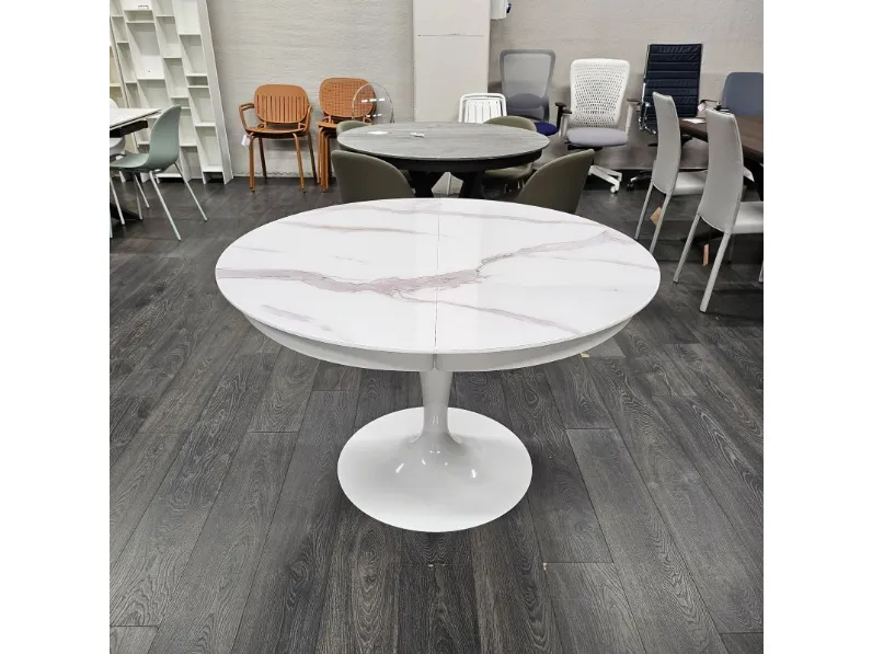 Da Pozzoli Arredamenti è in promozione il tavolo rotondo allungabile Eclipse di Ozzio Italia, un’icona di design che unisce eleganza e funzionalità. Questo tavolo si distingue per il suo basamento centrale in metallo bianco, dalla linea moderna e scultorea, che dona stabilità e leggerezza visiva.