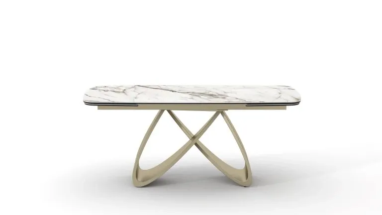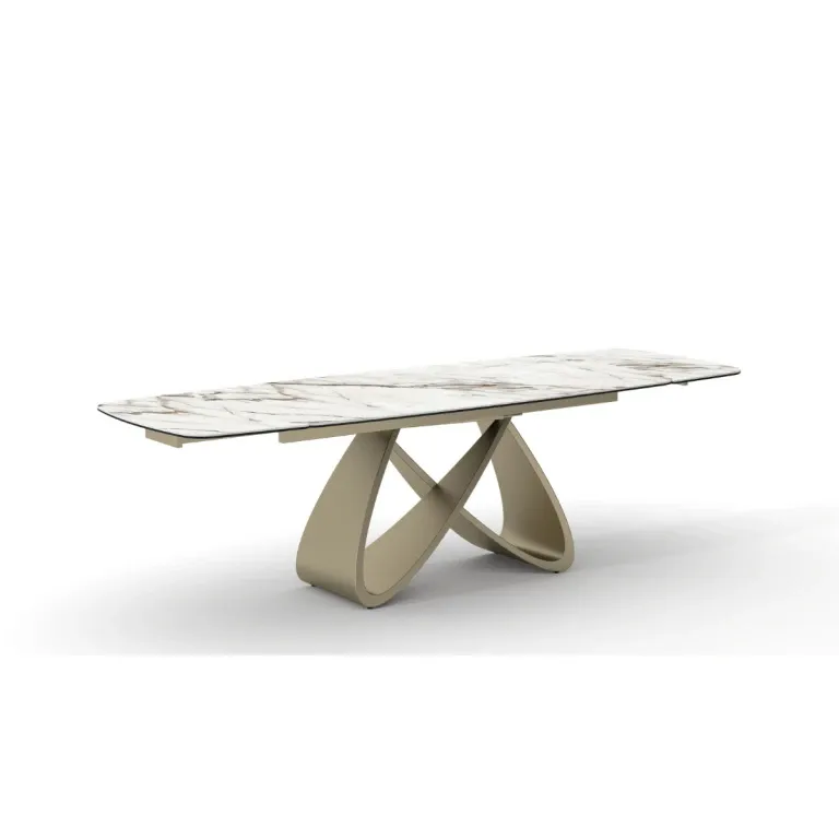 Tavolo Allungabile Aurelio Design Intrecciato Champagne e Ceramica Effetto Marmo