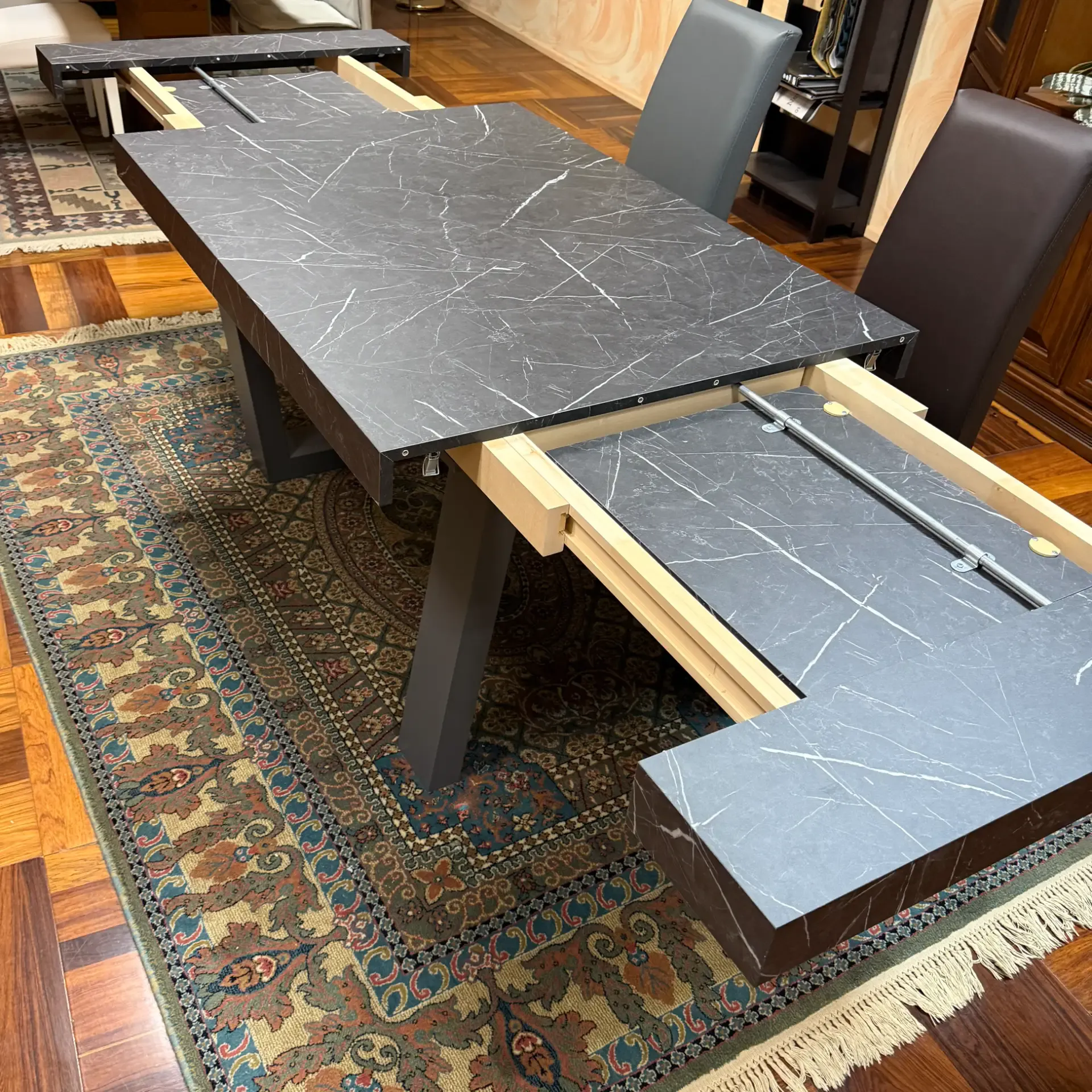 I tavoli sono, con le sedie, gli arredi più essenziali in ogni casa, infatti è fondamentale sceglierli a seconda delle necessità pratiche ed estetiche: questo tavolo Aria comprende un piano in laminato di grande personalità, resistente negli anni e capace di preservare il valore estetico del materiale, assicurandoti al contempo di avere una superficie di appoggio sempre a disposizione. I mobili non devono mai essere d'ingombro, soprattutto per quanto riguarda lo spazio che occupano seguendo la configurazione degli interni; per tale ragione è fondamentale valutare con attenzione anche le misure del tuo tavolo: il modello Allungabile Aria visibile in foto ha una lunghezza che va da 161 a 190 cm ed è quindi ideale per un ambiente di molteplici misure. Allo scopo di ottenere il meglio dallo spazio disponibile, cosicché siano funzionali ma anche dall'estetica raffinata, è essenziale valutare le molteplici versioni di tavoli che sono disponibili in commercio: quelli allungabili, come questo modello AriaArtigianale, si inseriscono in locali di diverse misure assicurandoti, al contempo, di avere una superficie di appoggio multifunzionale sempre a disposizione; avrai spazio a disposizione anche per l'ospite più inatteso per l'uso di questo tavolo allungabile a prezzo scontato. Linee ben studiate ed una peculiare uniformità di stile sono imprescindibili in un modello di tavolo che si rispetti: questo modello AriaArtigianale è rettangolare, capace di esaltare il mood degli interni personalizzandoli; che sia rettangolare, rotondo, ellittico o quadrato, il tavolo deve unire praticità e design per rispondere a ogni tua aspettativa di spazio seguendo il tuo gusto personale. Questo tavolo Aria è connotato da una struttura a cavalletto che ne completa l'estetica, interamente costruito con materiali di qualità e che resistano negli anni.