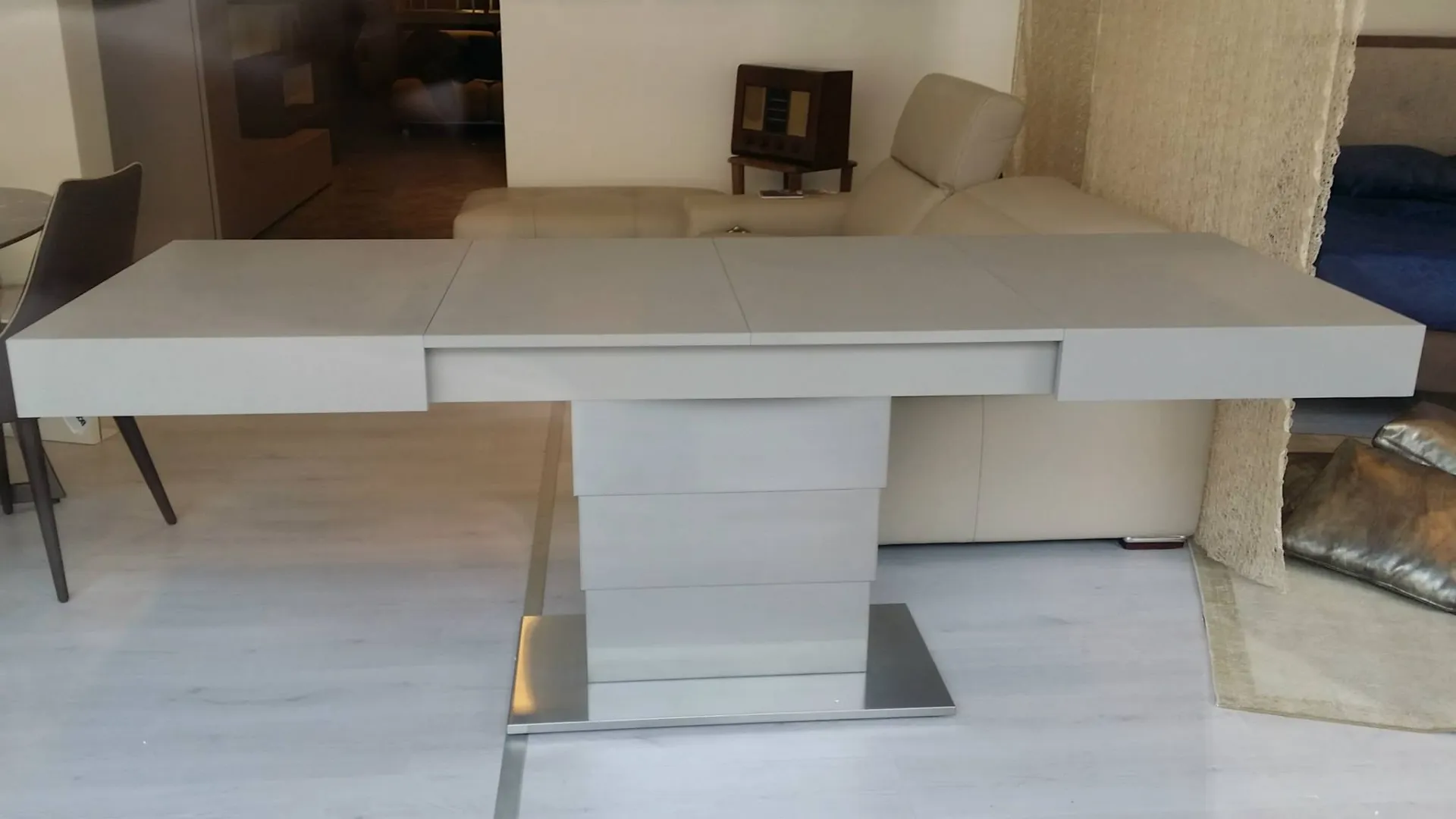 Tavolo ares trasformabile. in ecomalta, basamento acciaio ad alzata a gas trasformabile, 120x80, chiuso, diventa un comodo e robusto tavolo da pranzo 80x120/170/220