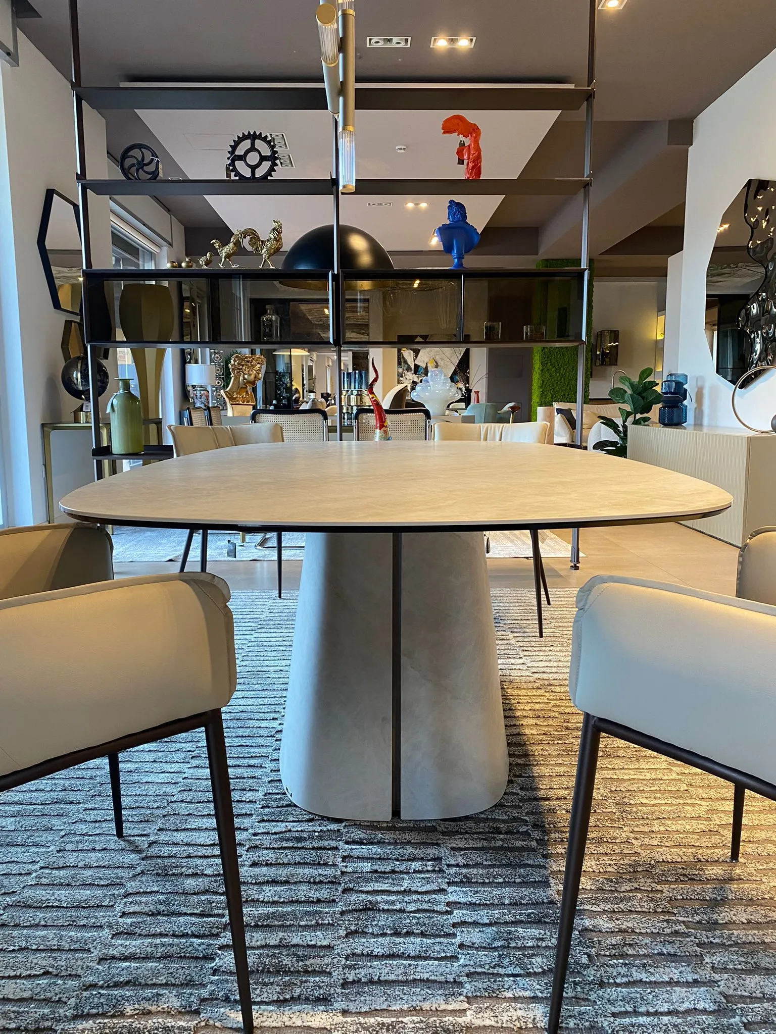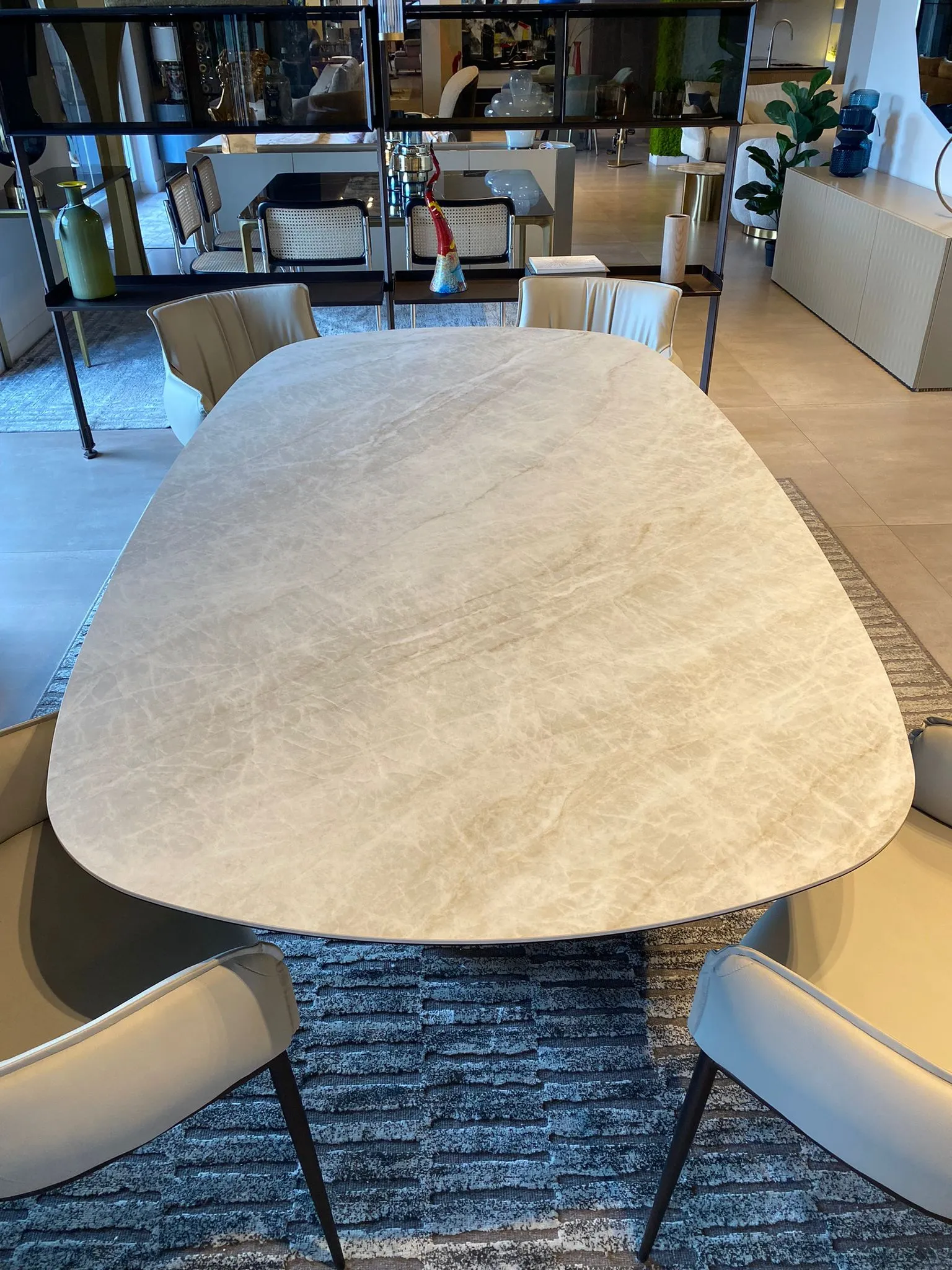 La forma del tavolo definisce fin da subito l'effetto visivo del locale e del pezzo di arredo stesso, poiché valorizza il mood della stanza con una peculiare continuità stilistica; il tavolo Cattelan italia Napoleon qui disponibile a prezzo ribassato, non fa eccezione: è ovale e questo lo rende adeguato per definire il valore estetico del tuo soggiorno o della tua cucina, nonchè per sfruttare bene forma e dimensioni delle stanze garantendoti una superficie di appoggio sempre disponibile.