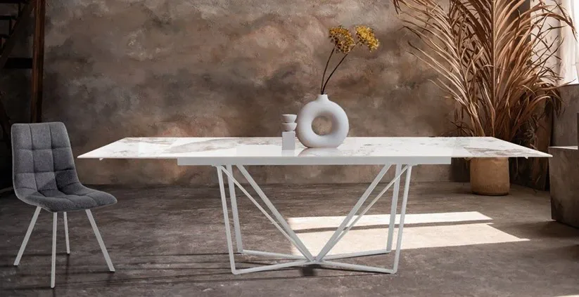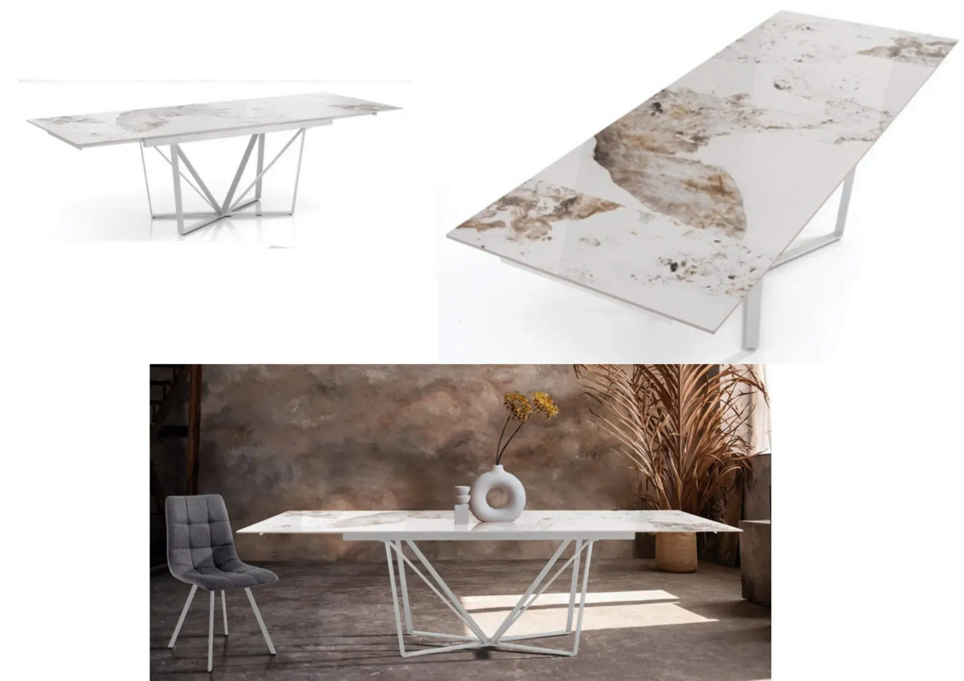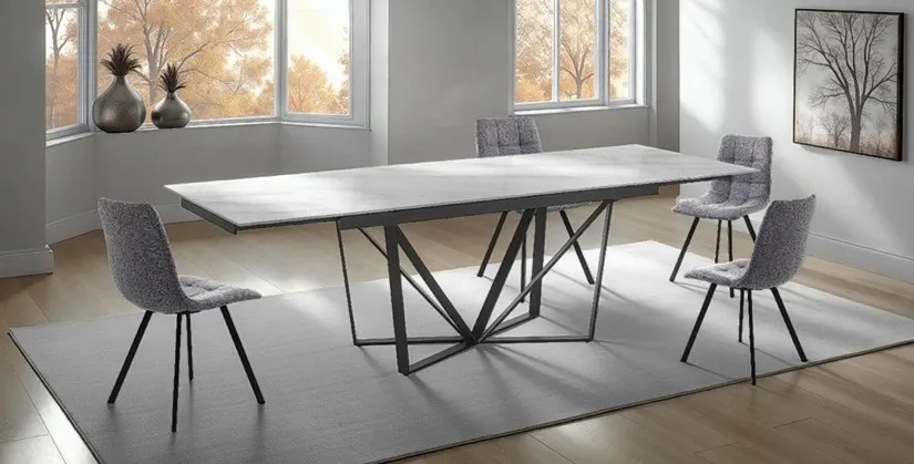 Eleganza contemporanea che si estende: il tavolo SUSAN unisce design scultoreo e funzionalità.