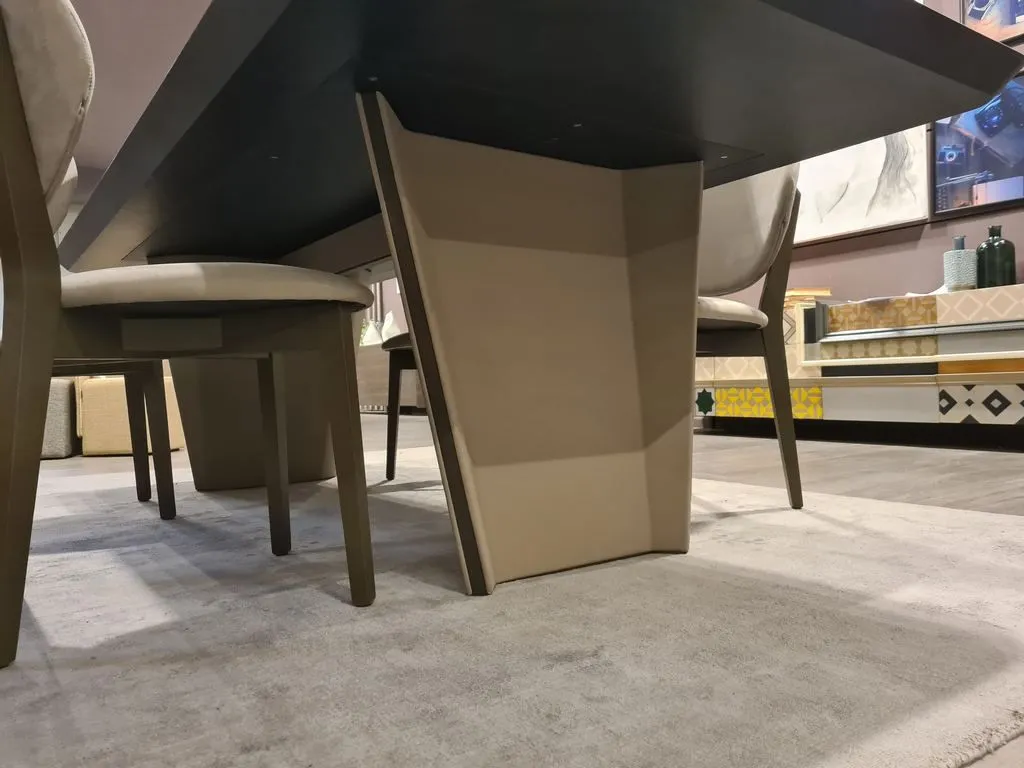 BLADE250_ TAVOLO MOD. BLADE L.250 P.110 H.75PIANO IN EUCALIPTO AFFUMICATO WATERSILKGAMBE RIV. ECOPELLE MAGIC NO FIRE 603