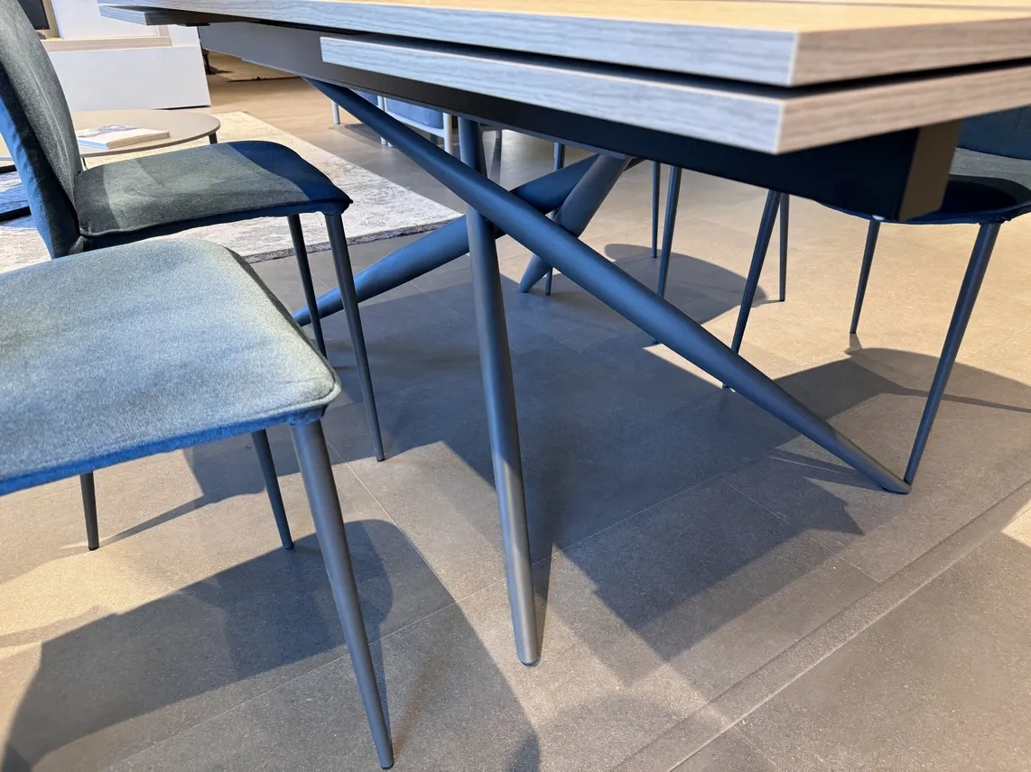 TIFU121916623175+ABBMET1751S7141S71 4_SET TAVOLO TIFFANY ALL. UP L.180/280 P.100 H.76 BASAMENTO LAVA - 166 - PIANO: MT-RSB ROVERE SABBIA + N°4 SEDIA ABBA METALLO L 46 P 56 H 89/47 BASAMENTO LAVA 175 TESS.: TESSUTO SELFIE 714 - BORDINO: TESSUTO SELFIE 714