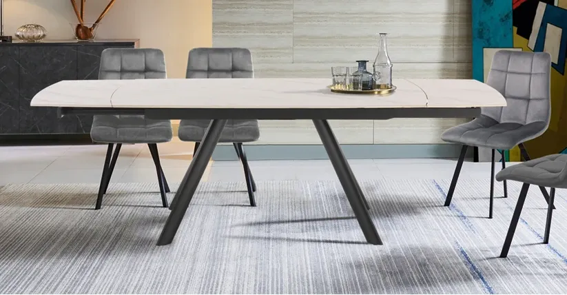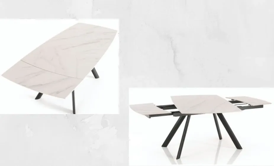 Se stai considerando diverse composizioni arredative con tavoli di qualsiasi misura e forma per la tua abitazione, non dimenticare di valutare attentamente anche i materiali con cui sono stati fatti i piani: il **cristallo**, il **legno**, il **metallo** e le sostanze **plastiche** sono solo alcuni dei materiali caratterizzati da peculiari doti di praticità e design; il tavolo **David** qui scontato consta di un piano in **ceramica** dall'estetica raffinata. La lunghezza del tavolo qui presente, che va da 161 a 190 cm, rende questo modello **David Allungabile** idoneo ad essere posizionato in locali di varie volumetrie, per rendere bello il locale in una varietà di risultati estetici; le dimensioni dell'arredo che desideri posizionare nella tua casa sono tanto importanti da valutare, proprio perchè non devono mai essere d'ingombro. Grazie alla gamma di tavoli di forme singolari e dall'estetica raffinata ti offriremo la possibilità di decorare alla perfezione, in modo veloce ed accattivante, gli spazi indoor seguendo il tuo gusto personale. In negozio proponiamo un'ampia gamma di tavoli originali, come questo modello **Collezione esclusiva ellittico**, che danno la possibilità di personalizzare gli spazi indoor di diverse dimensioni, creando peculiari atmosfere rilassanti, accattivanti e piacevoli. Una struttura a quattro gambe ultima l'estetica del tavolo **Ellittico** qui presente, che si confermerà in tal modo protagonista del living o della cucina dove viene collocato, grazie alla sua figura dall'estetica raffinata. Con lo scopo di sfruttare bene forma e dimensioni delle stanze, cosicché siano funzionali ma anche dall'estetica raffinata, è essenziale prendere in considerazione le diverse versioni di tavoli che sono disponibili in commercio: quelli allungabili, come questo modello **David Collezione esclusiva**, si inseriscono in locali di varie volumetrie garantendoti, contemporaneamente, di avere un piano d'appoggio plurifunzionale sempre disponibile; avrai spazio a disposizione altresì per l'ospite più inaspettato per merito di questo tavolo allungabile a prezzo scontato.