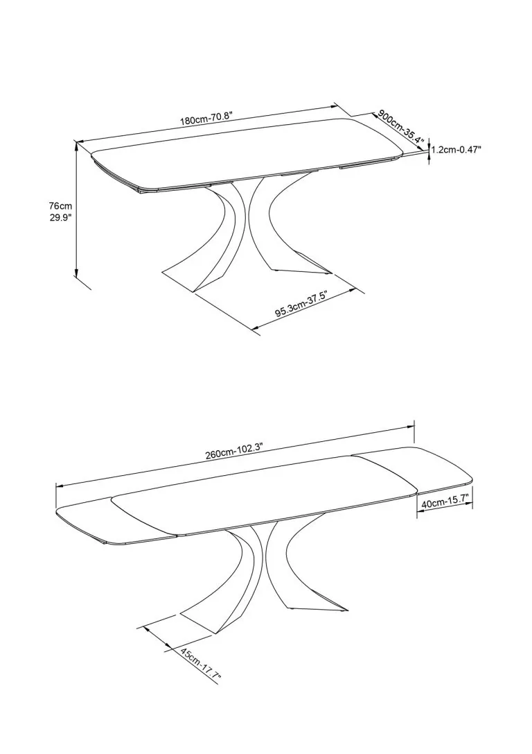Questo tavolo si distingue per il suo basamento di design in metallo color bronzo, caratterizzato da due ali simmetriche che sembrano sfidare la gravità, donando leggerezza visiva nonostante l estrema solidità della struttura.