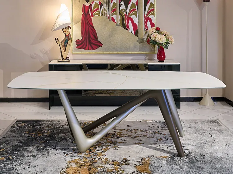 - Questo tavolo Esse è caratterizzato da una struttura con basamento centrale che ne completa il valore estetico, interamente realizzato con materiali durevoli e che resistano negli anni.