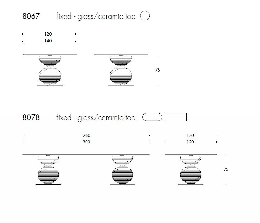 Il tavolo Firenze è disponibile con diametro 120 cm, ma può essere personalizzato. Sono disponibili versioni con piano stondato, rettangolare e in diverse misure su richiesta.
