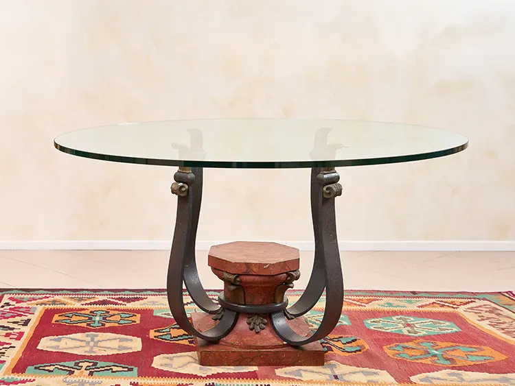 Allo scopo di completare perfettamente un living o una zona cucina in stile classico nonché contemporaneo, il marchio Artigianale propone un'ampia gamma di composizioni arredative con tavoli di ogni genere e forma, tra cui inoltre quello qui presente rotondo; realizzato con materiali durevoli e resistenti nel tempo, il tavolo Irene sarà in grado di completare il tuo arredo ottimizzando gli spazi e assicurandoti una peculiare coerenza di stile.