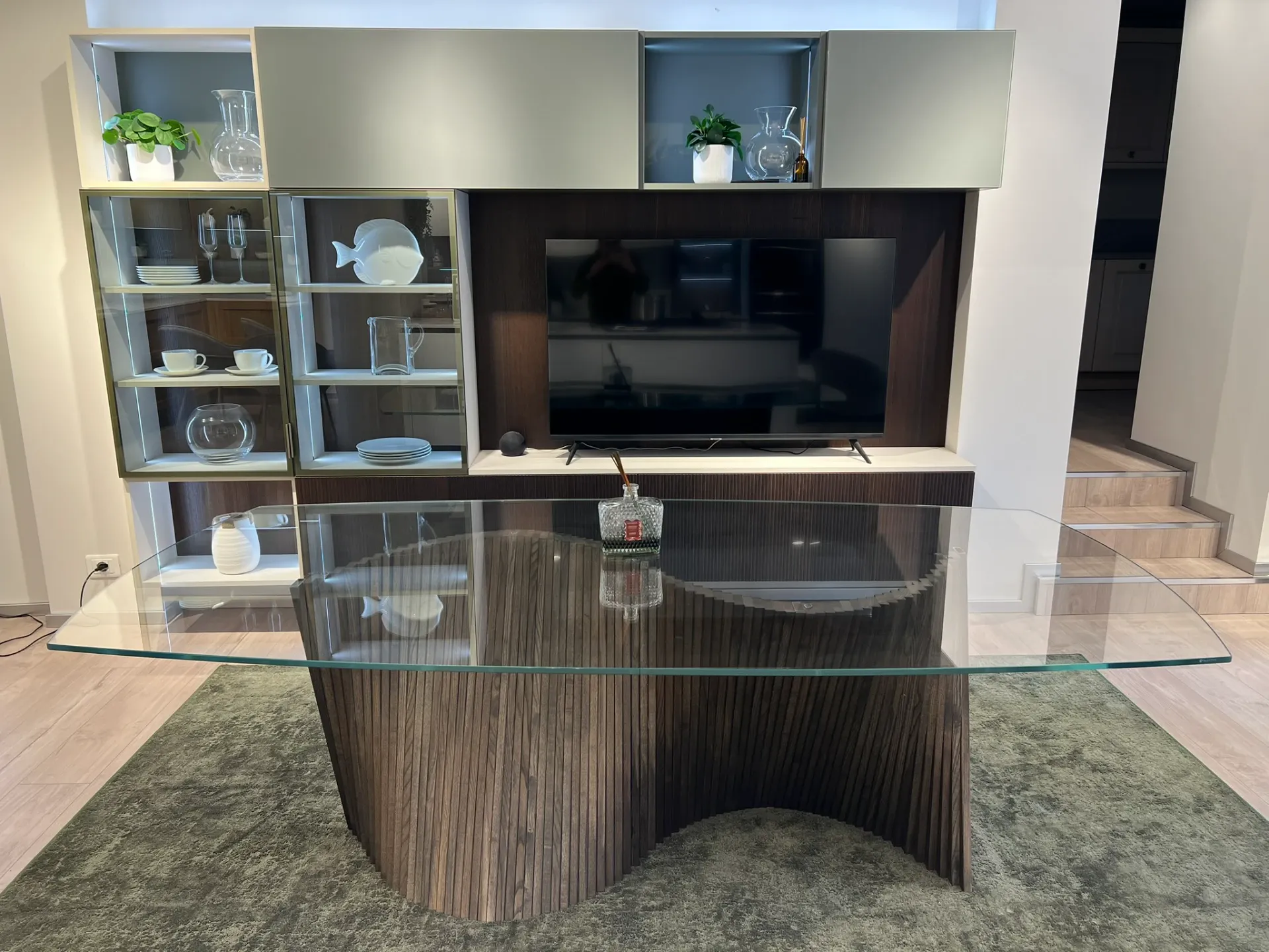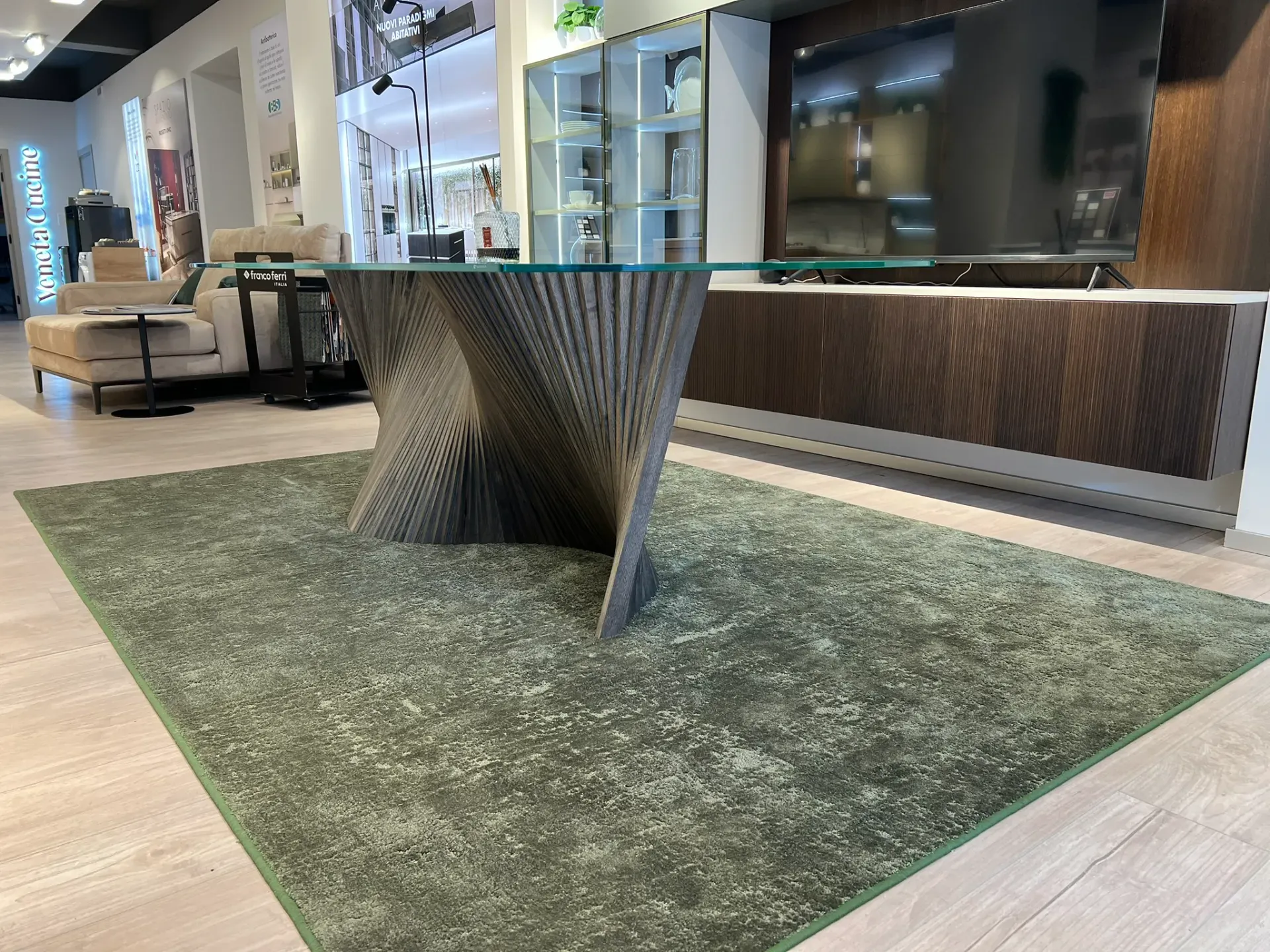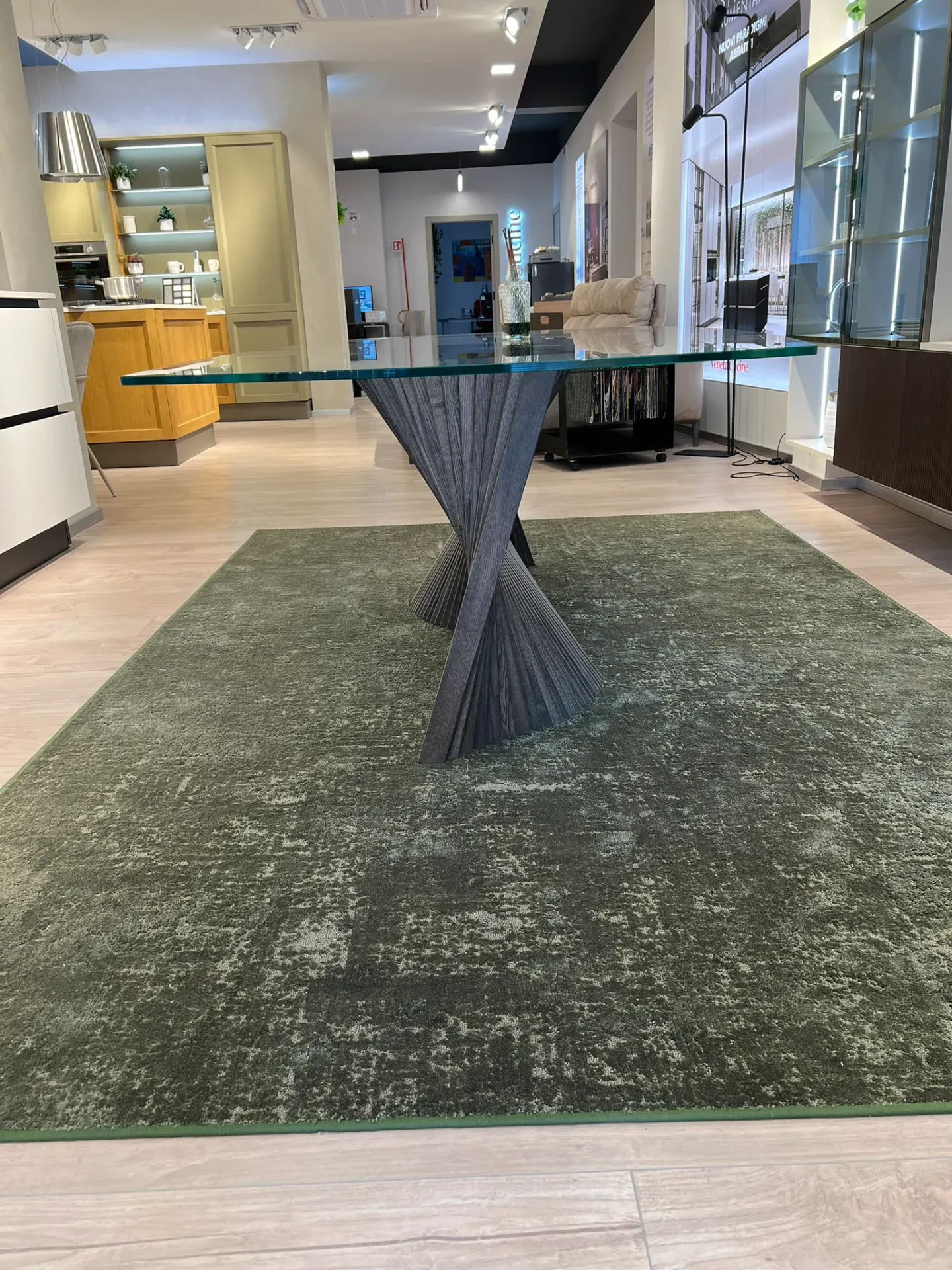 Il tavolo Orbita di Natisa è un elegante tavolo di design che unisce solidità e leggerezza visiva. Il basamento in legno dona calore e stabilità, mentre il top in vetro trasparente valorizza le linee della struttura e illumina l'ambiente.