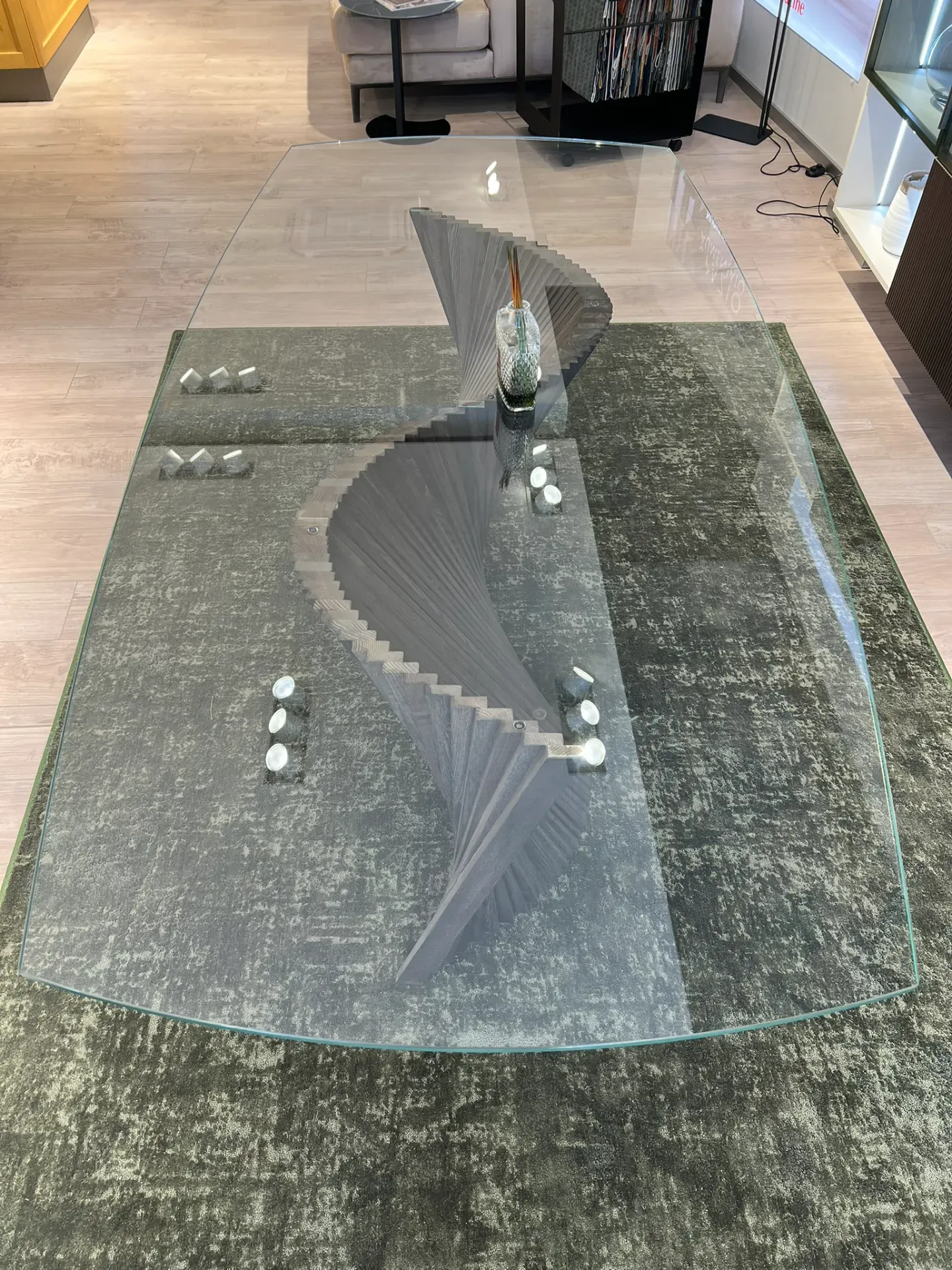 Con dimensioni 220 X 110 cm, il tavolo orbita è ideale per sale da pranzo e living moderni, offrendo ampio spazio ed un'estetica raffinata.