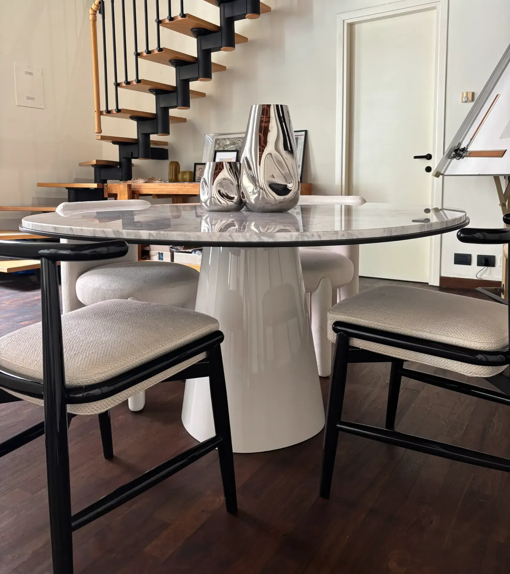 Che tu desideri posizionare il tavolo Rotondo Owen nel soggiorno o nella cucina, esso si rivelerà protagonista dell'ambiente: grazie alle forme decise della sua struttura con basamento centrale, completerai i locali interni anche dal punto di vista dell'estetica.