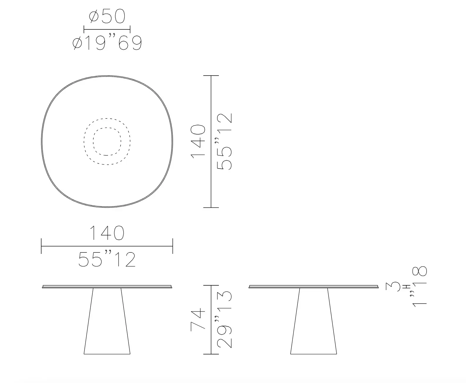 Tavolo dall aspetto scultoreo che coniuga l assoluta semplicità formale alla ricercatezza dei materiali. Owen si compone di un piano supercerchio, che unisce le proprietà di un quadrato a quelle di un cerchio, che poggia su una base rastremata.