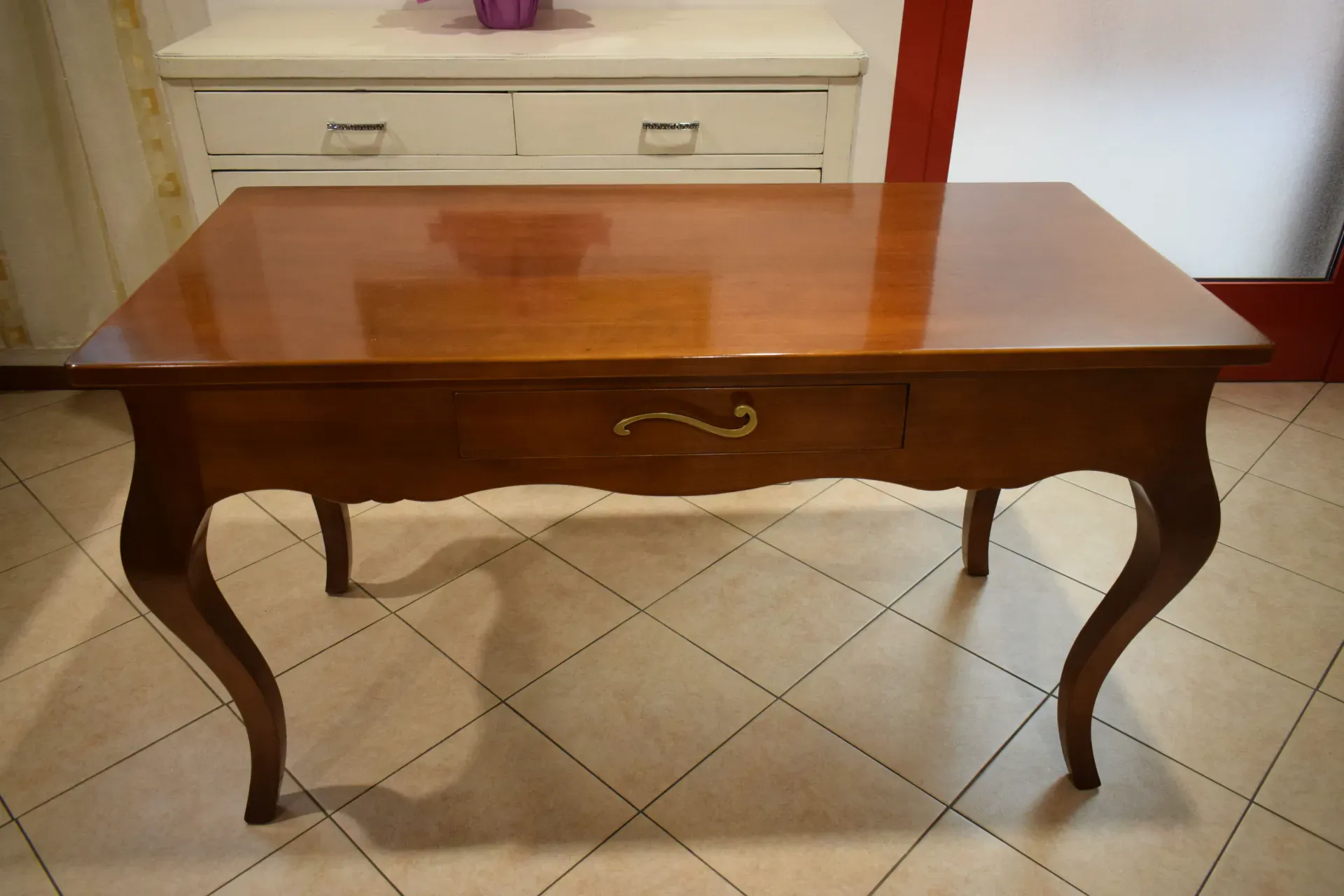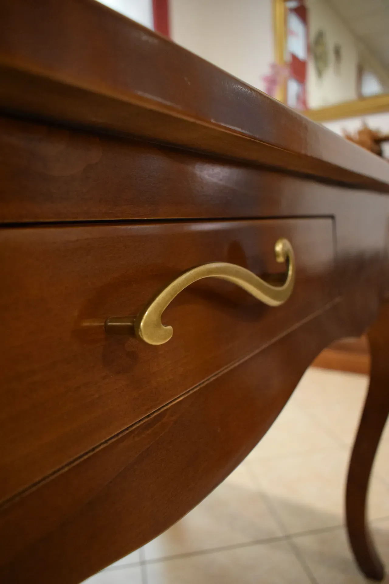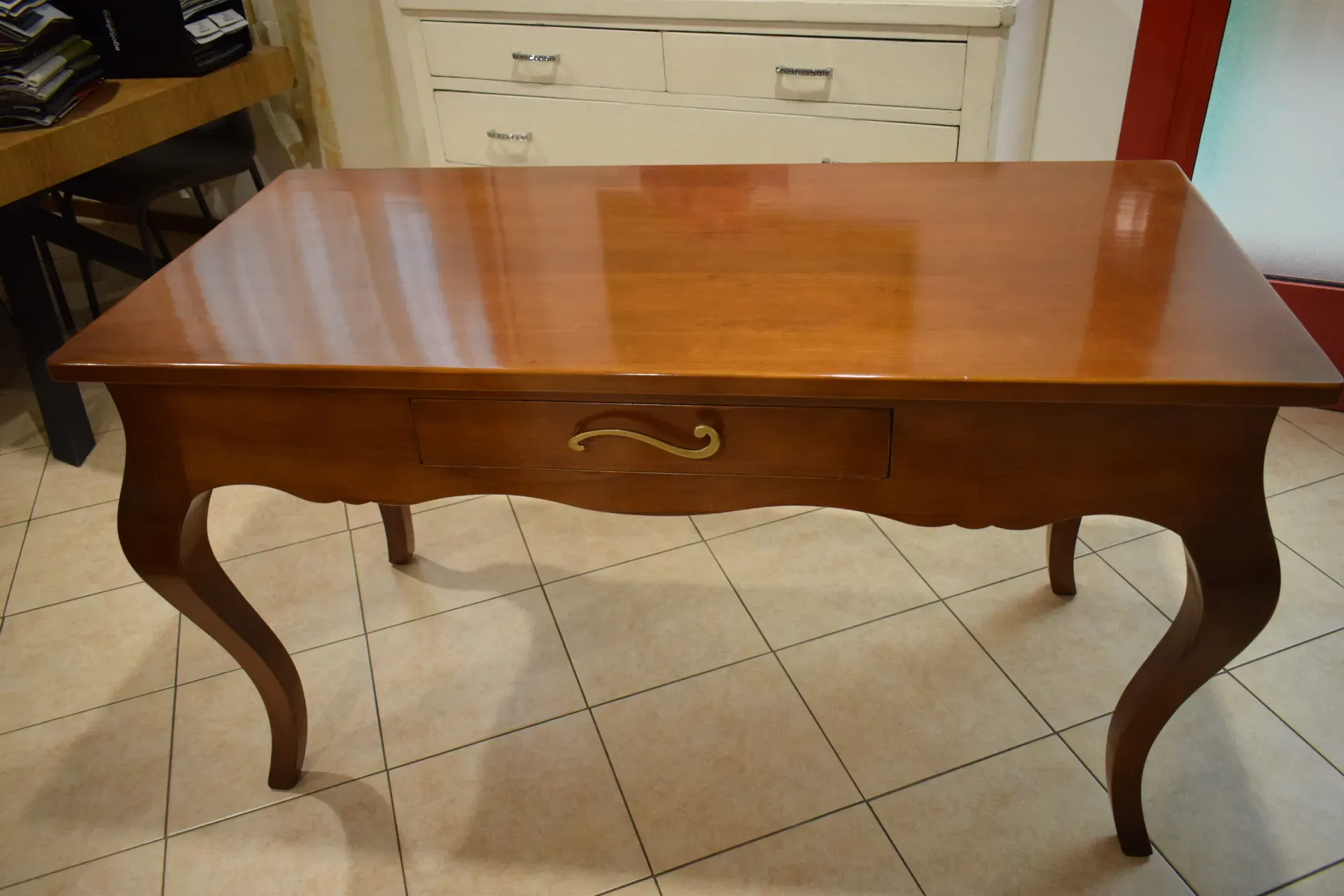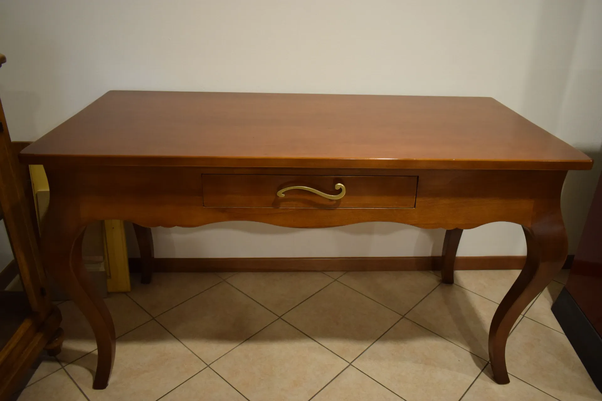 La scrivania in legno stile classico, intramontabile nel tempo, di grande arredo, un mobile artigianale costruito da sapienti falegnami veneti. Le dimensioni della scrivania è 140 x 80 con gli angoli arrotondati smussati, anche le gambe sono curve belle rotonde verso l'esterno, una forma originale, nella parte centrale un cassetto in legno, con la maniglietta in acciaio per aprirlo comodamente. La nostra offerta è di Euro 400, 00 con la consegna compresa nel prezzo, in tutta Italia. Per maggiori informazioni e dettagli inviateci info 340 0557150