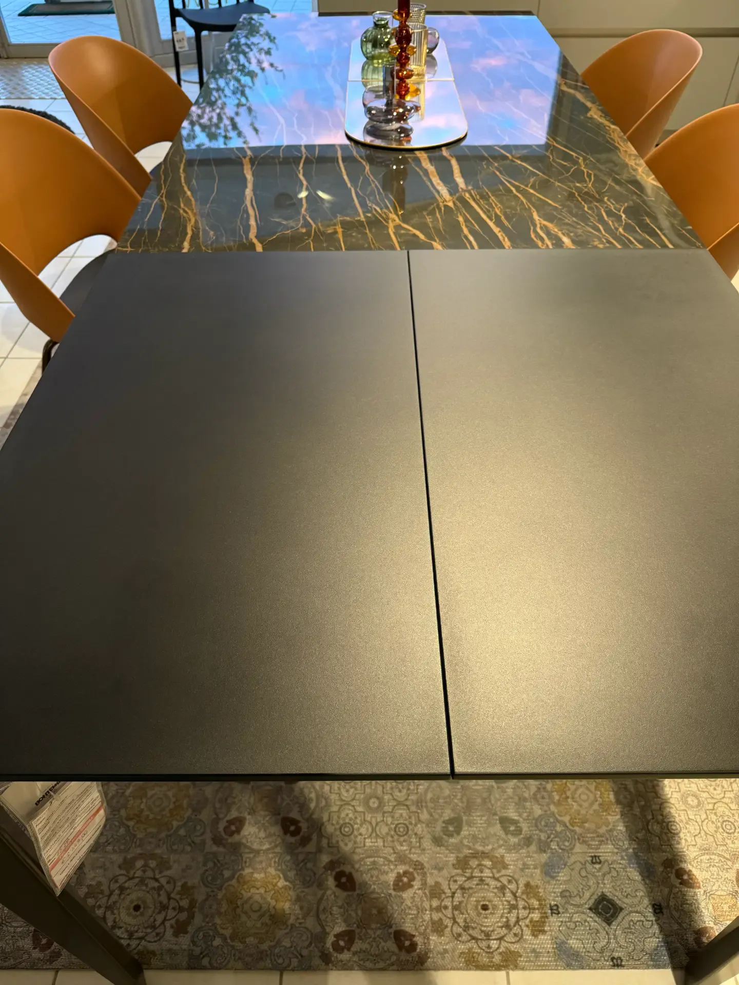 Questo tavolo Chef è connotato da una struttura a quattro gambe che ne completa il valore estetico, totalmente costruito con materiali di prima scelta e resistenti negli anni. Grazie alla gamma di tavoli di forme singolari e di grande personalità avrai la possibilità di organizzare alla perfezione, in modo tempestivo ed accattivante, gli spazi indoor seguendo il tuo gusto personale. In negozio proponiamo una vasta scelta di tavoli originali, come questo modello Bontempi rettangolare, che consentono di arredare gli spazi indoor di molteplici misure, creando particolari atmosfere rilassanti, accattivanti e accoglienti. Durante l'acquisto dei tavoli da disporre in casa, occorre fare molta attenzione altresì alle finiture con cui sono stati fatti, in quanto presentano disparate qualità pratiche ed estetiche a seconda del tipo di piano: il tavolo Chef qui presente ne include uno costruito in ceramica di grande impatto estetico, su cui potrai riporre oggettistica d'uso quotidiano nonchè propriamente decorativo. Gli ambienti interni di ogni tipo occorre che siano organizzati con una precisa logica, in modo che gli arredi organizzino al meglio lo spazio senza essere ingombranti: per questo motivo la scelta diventa spesso faticosa e si rischia di rinunciare all'aspetto estetico piuttosto che pratico; noi sappiamo bene che per te è fondamentale avere a disposizione una vasta scelta di molteplici versioni di tavoli, tra cui altresì il modello allungabile qui presente, pensato per rispondere alle necessità di stile e spazio personali. Gli arredi non devono mai essere d'ingombro, soprattutto per quanto concerne lo spazio che impegnano seguendo la disposizione degli ambienti; per questo motivo è fondamentale valutare con cura anche le misure del tuo tavolo: il modello Allungabile Chef mostrato in foto ha una lunghezza che va oltre 221 cm ed è dunque ideale per un locale di molteplici volumetrie.