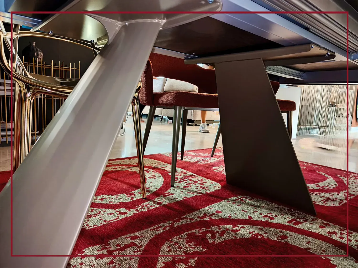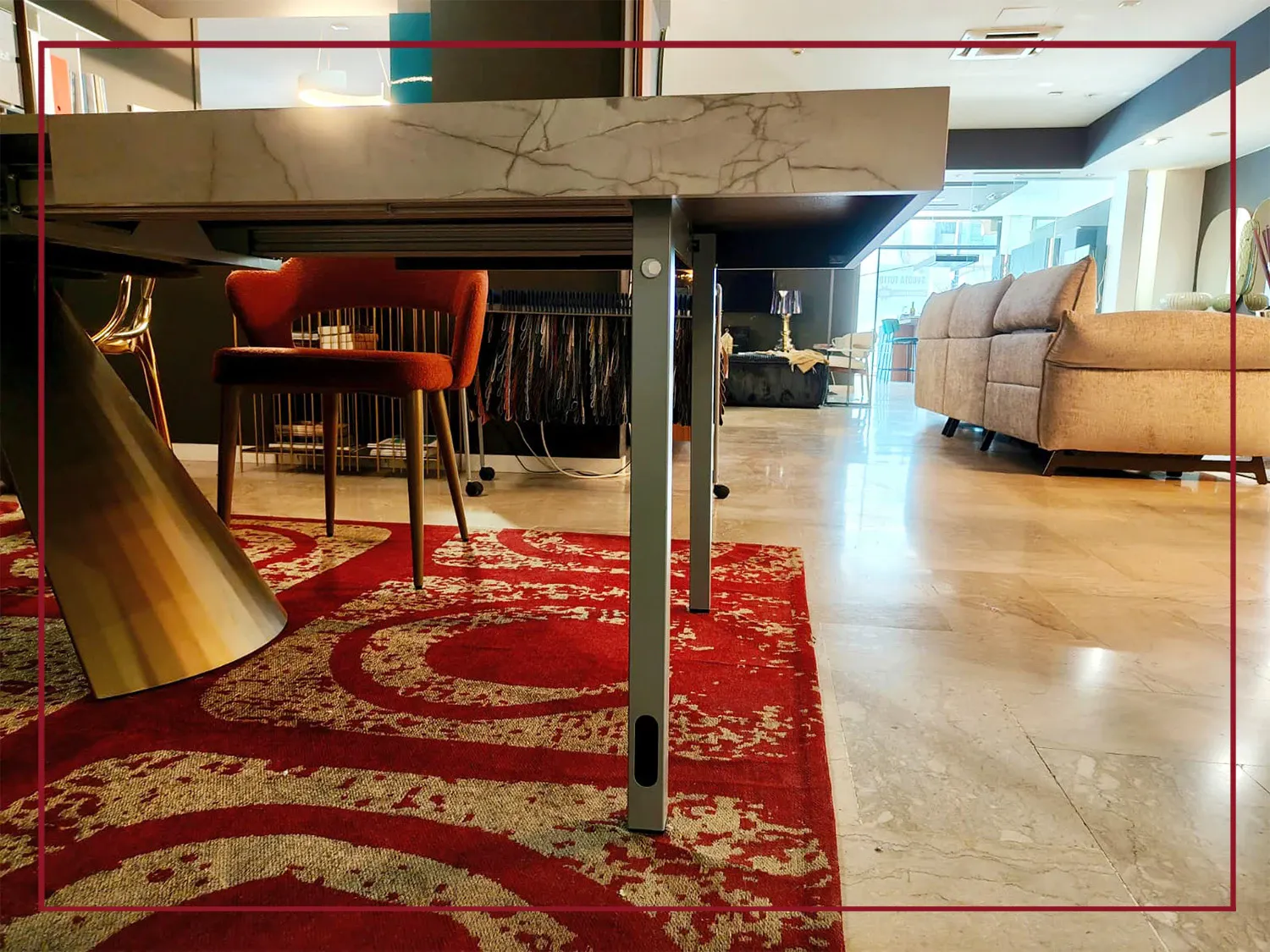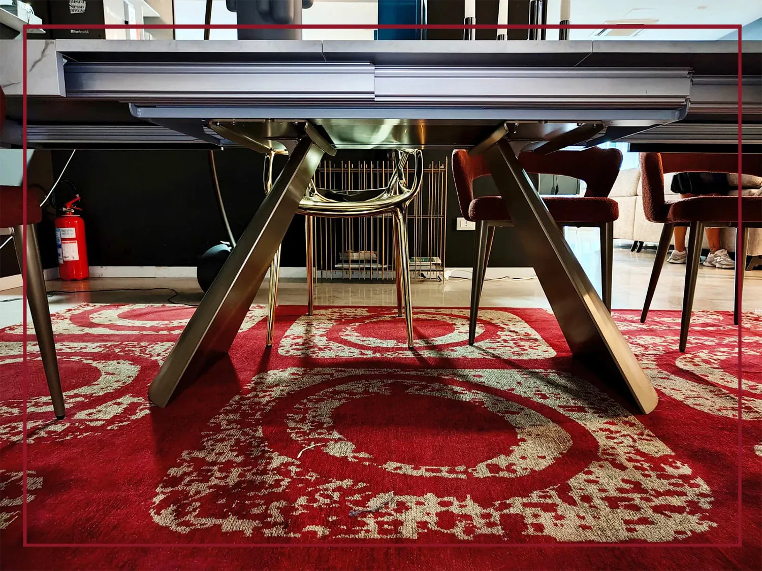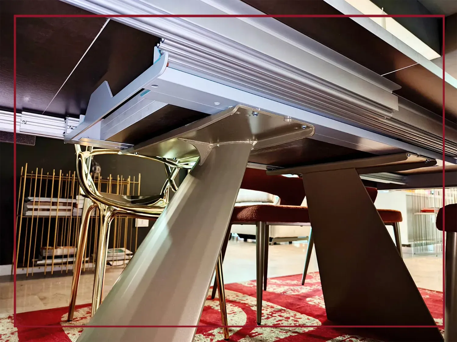 Il sistema di allunga, pratico e discreto, consente di estendere il piano con facilità grazie alle prolunghe integrate sotto il tavolo.