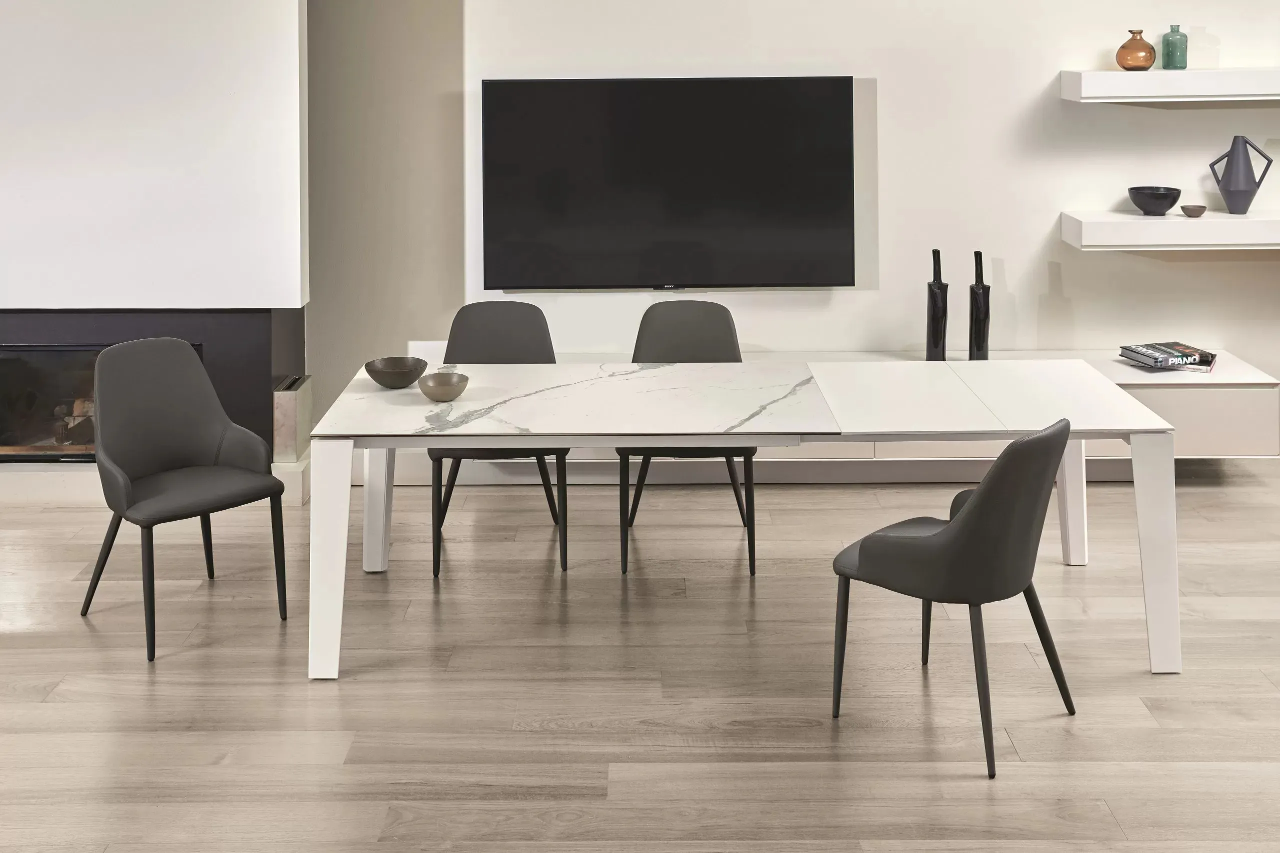 Da chiuso, i 120x80 cm sono la misura ideale per una cucina abitabile o un piccolo living: quattro posti comodi, presenza contenuta, niente spazio sprecato. Con la prolunga si arriva a 170x80 cm, sei posti e un tavolo che cambia completamente scala senza cambiare
