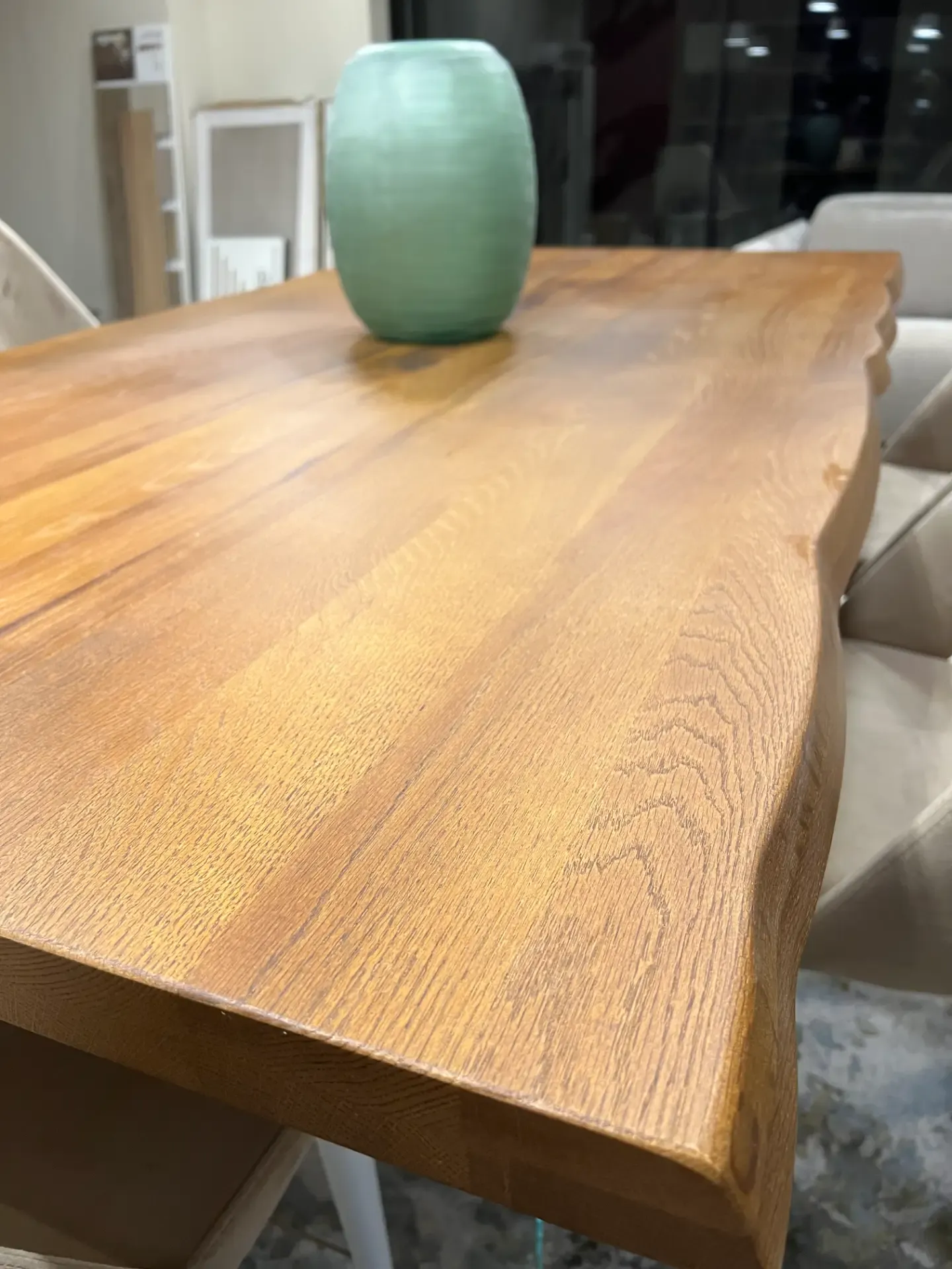 Il tavolo Spike di Alta Corte è un tavolo dal carattere autentico e scenografico. Il top in legno massiccio valorizza tutta la matericità del legno naturale, esaltato dal bordo irregolare che ne conserva l'aspetto vivo e originale. I piedi in vetro donano leggerezza visiva e creano un elegante contrasto tra solidità e trasparenza, rendendo il tavolo protagonista della zona living.