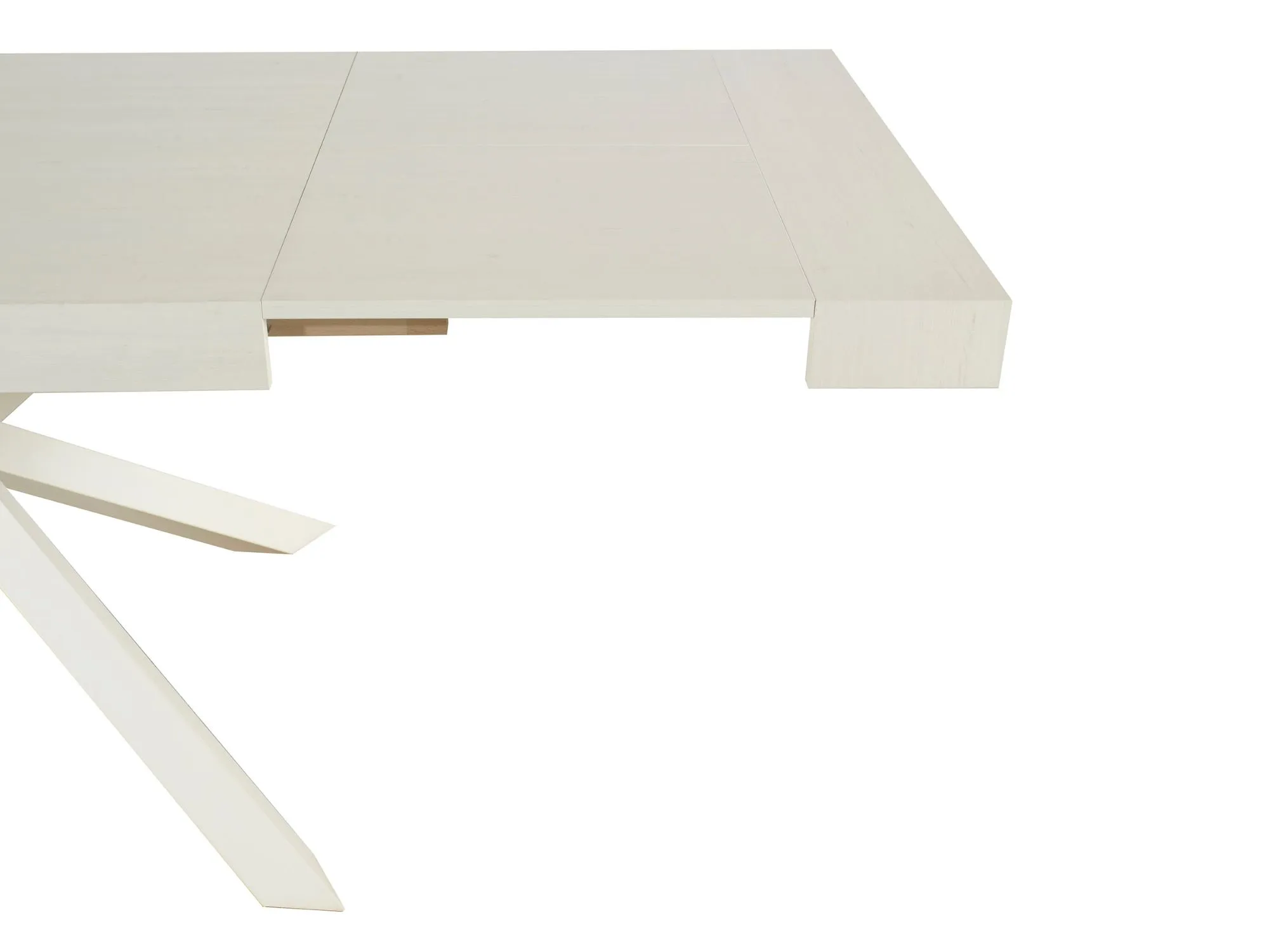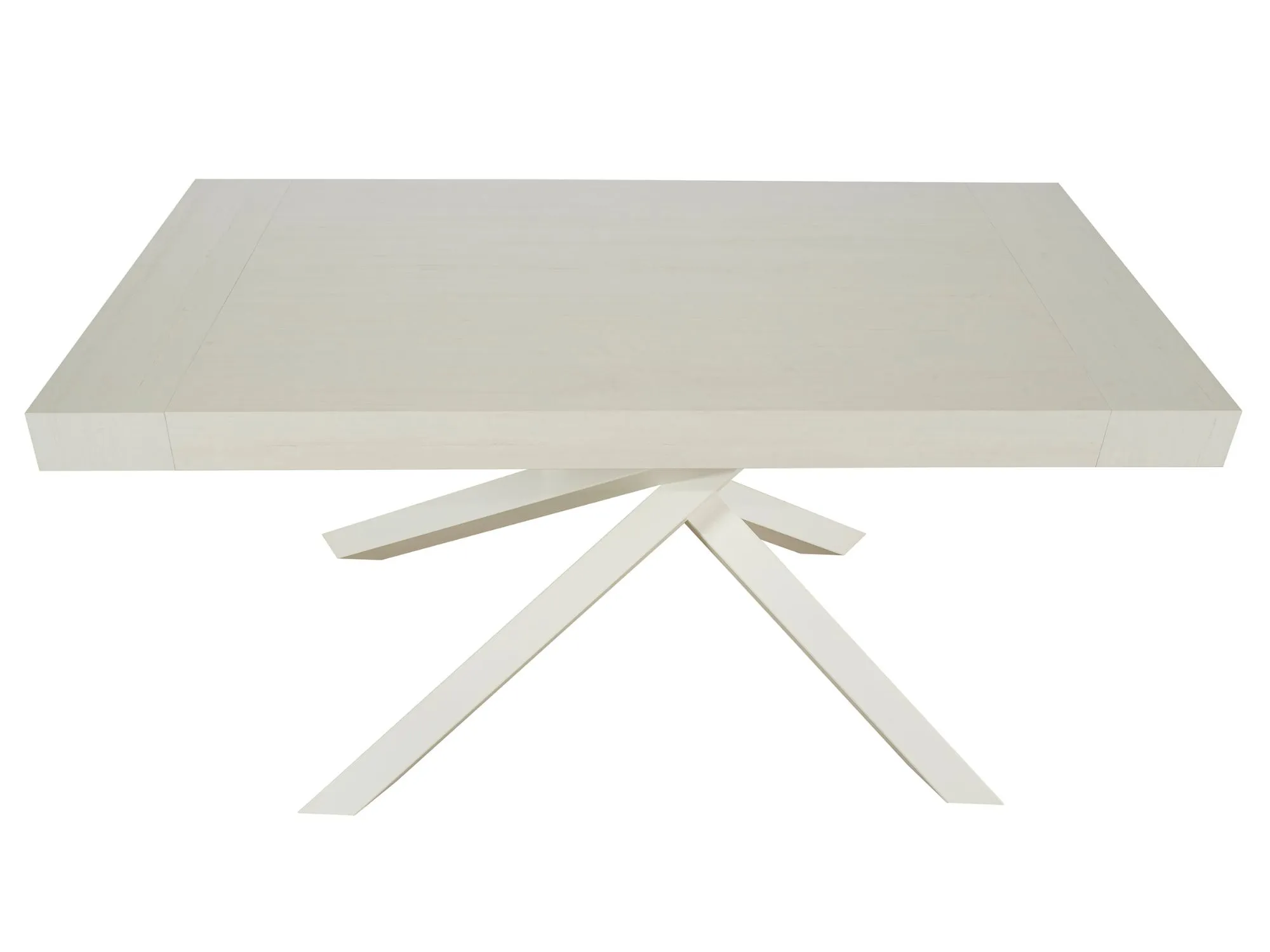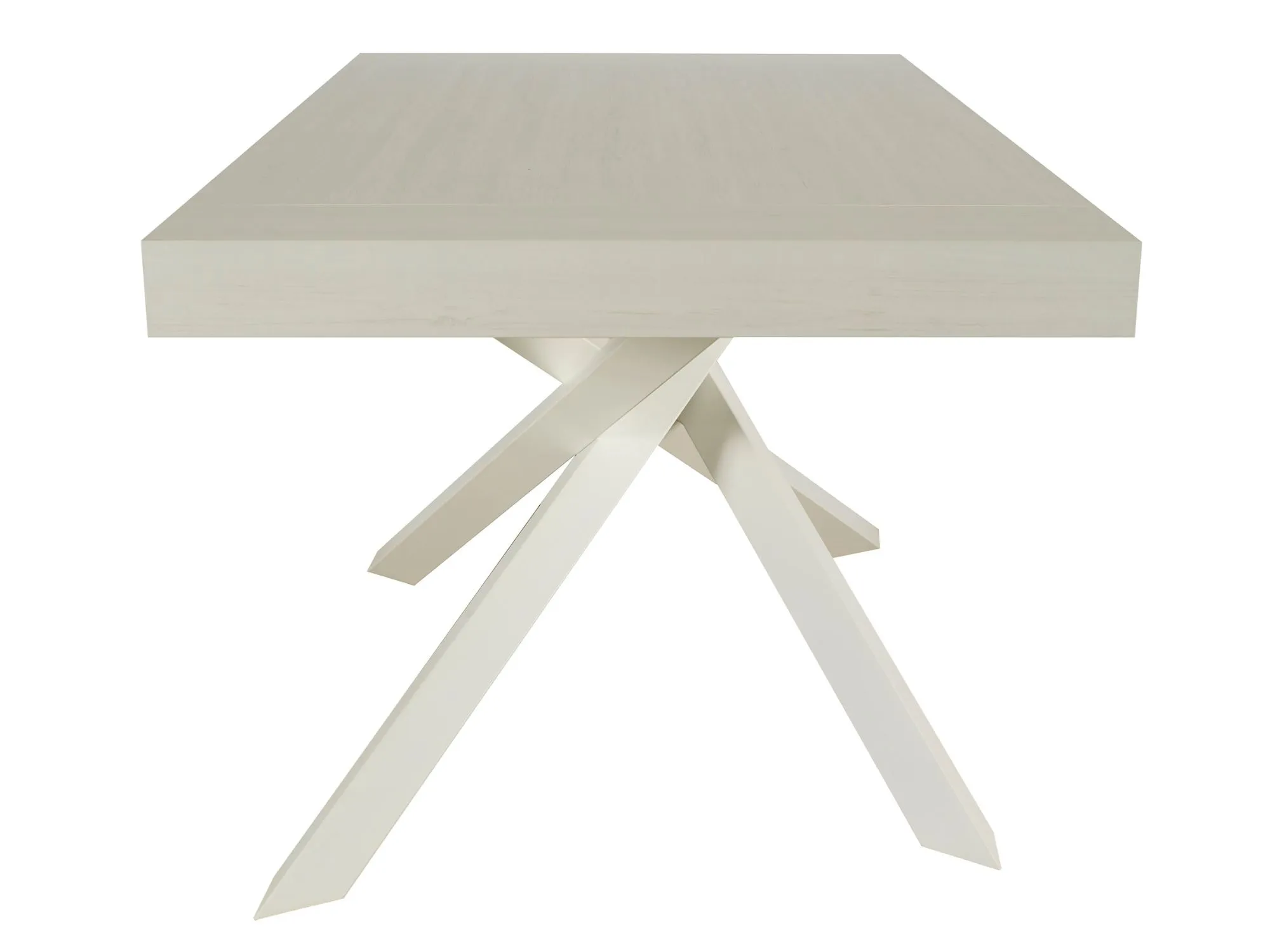 Tavolo MobiLike dal design contemporaneo e innovativo allungabile, con piano in nobilitato finitura bianco anticato e caratteristiche gambe incrociate in metallo verniciato di colore bianco anticato.