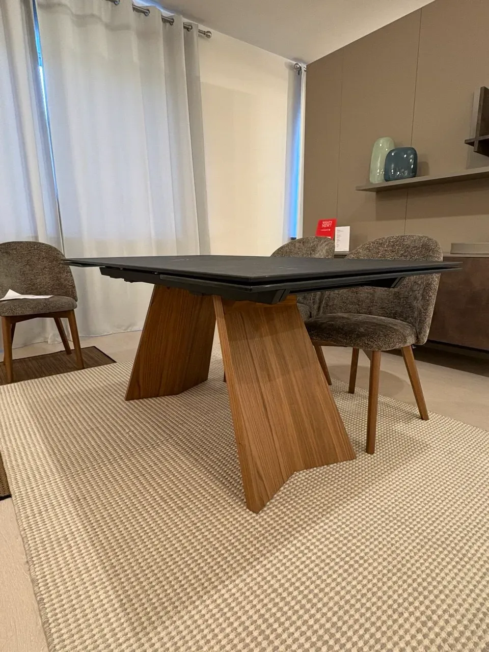 L'elemento distintivo del tavolo Icaro è la sua capacità di trasformarsi grazie al meccanismo di allunga integrato. Con pochi semplici gesti, il piano si estende per accogliere fino a 240 cm di lunghezza totale, rendendolo perfetto per ospitare cene numerose o eventi speciali. La continuità del marmo Calacatta nero anche nelle allunghe assicura un effetto visivo uniforme e impeccabile.