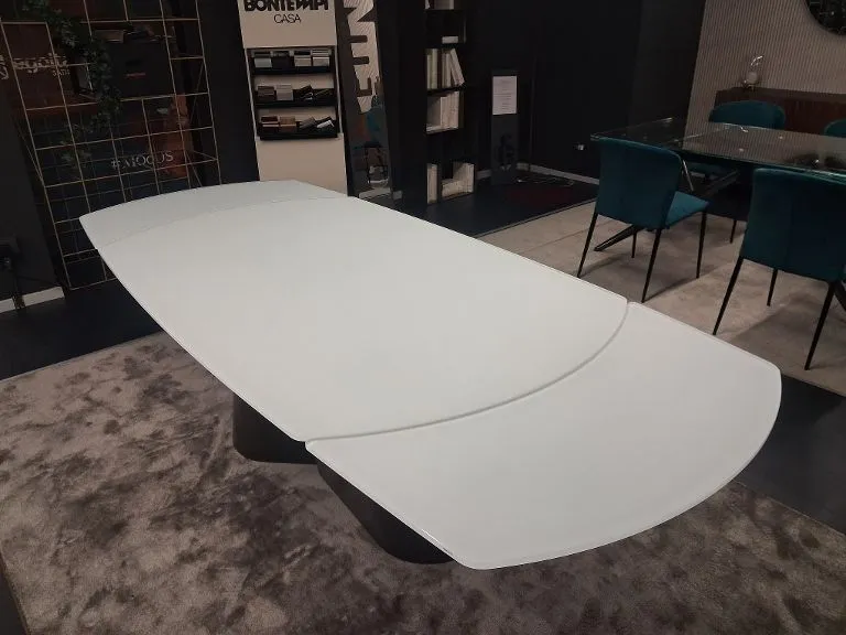 - Se gli edifici abitativi occupano spazi limitati, occorre scegliere i mobili secondo conformazione e metratura delle stanze al fine di organizzare al meglio lo spazio; è essenziale quindi valutare anche quale tipologia di tavolo fa per te: la marca Bontempi lavora continuamente per produrre tavoli che siano in grado di rispondere alle necessità individuali, tra cui anche questo modello Kimono ovale allungabile.