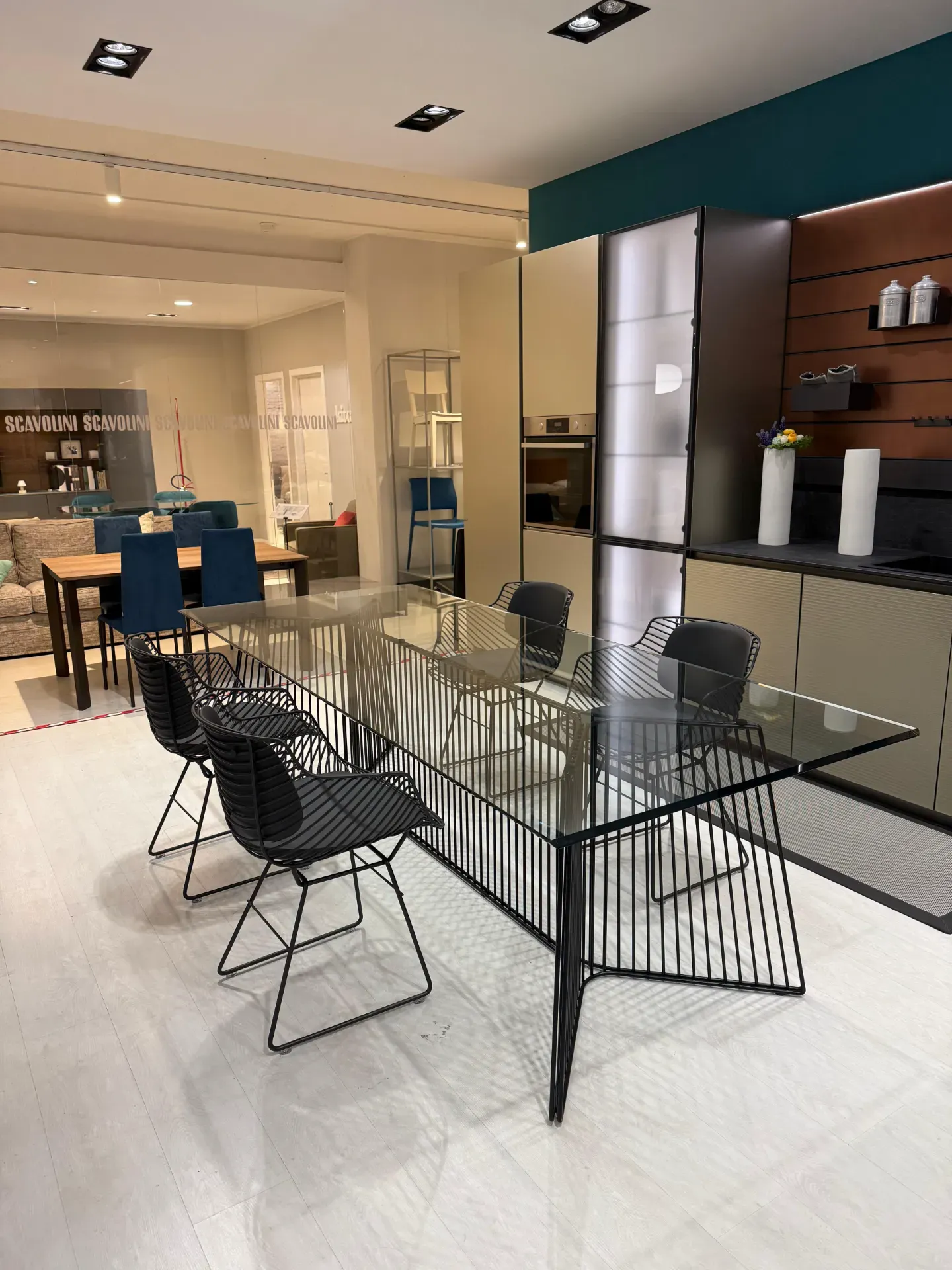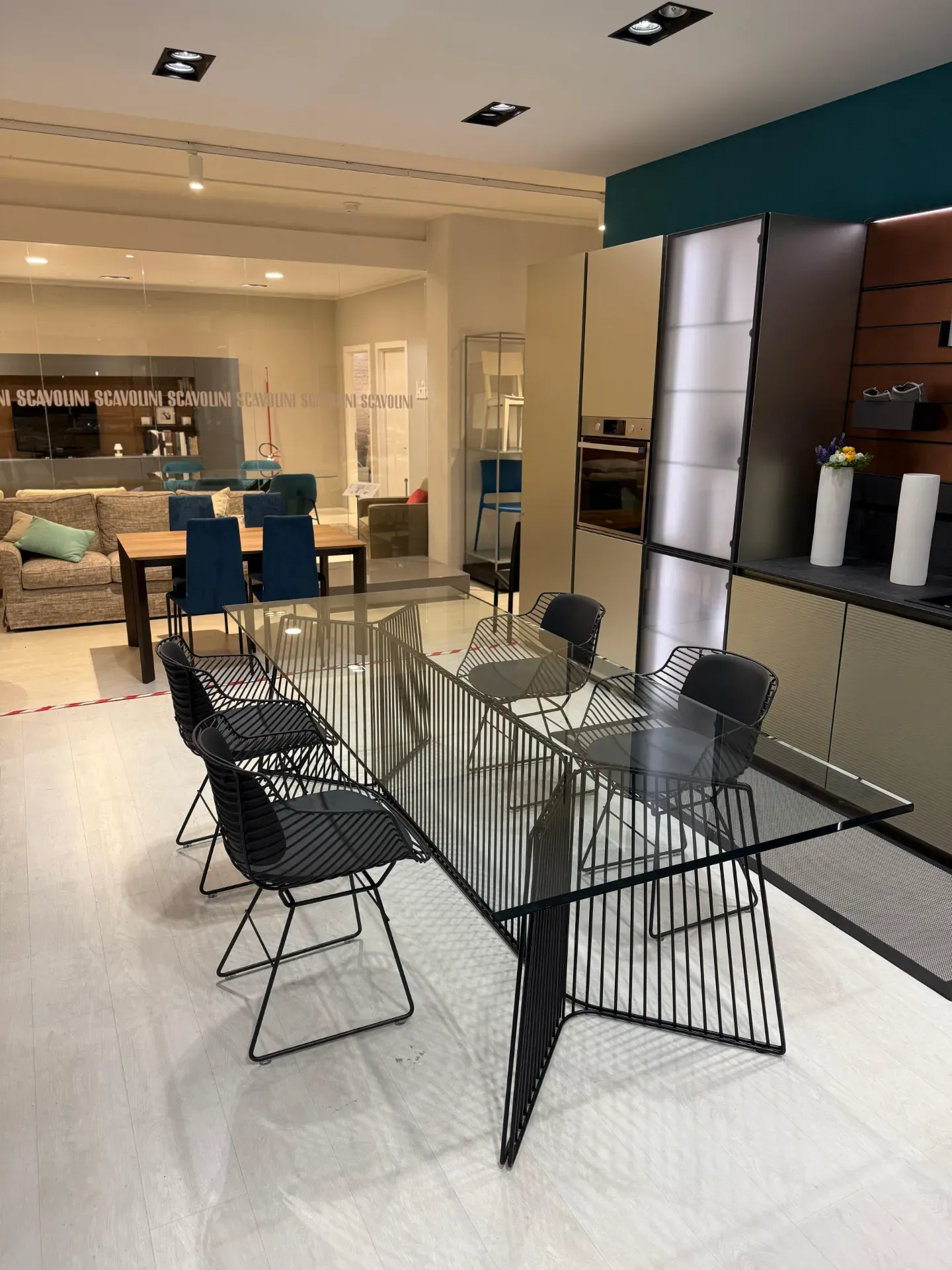 Il piano è in vetro temperato spesso 15 mm, garantendo robustezza e una finitura raffinata.