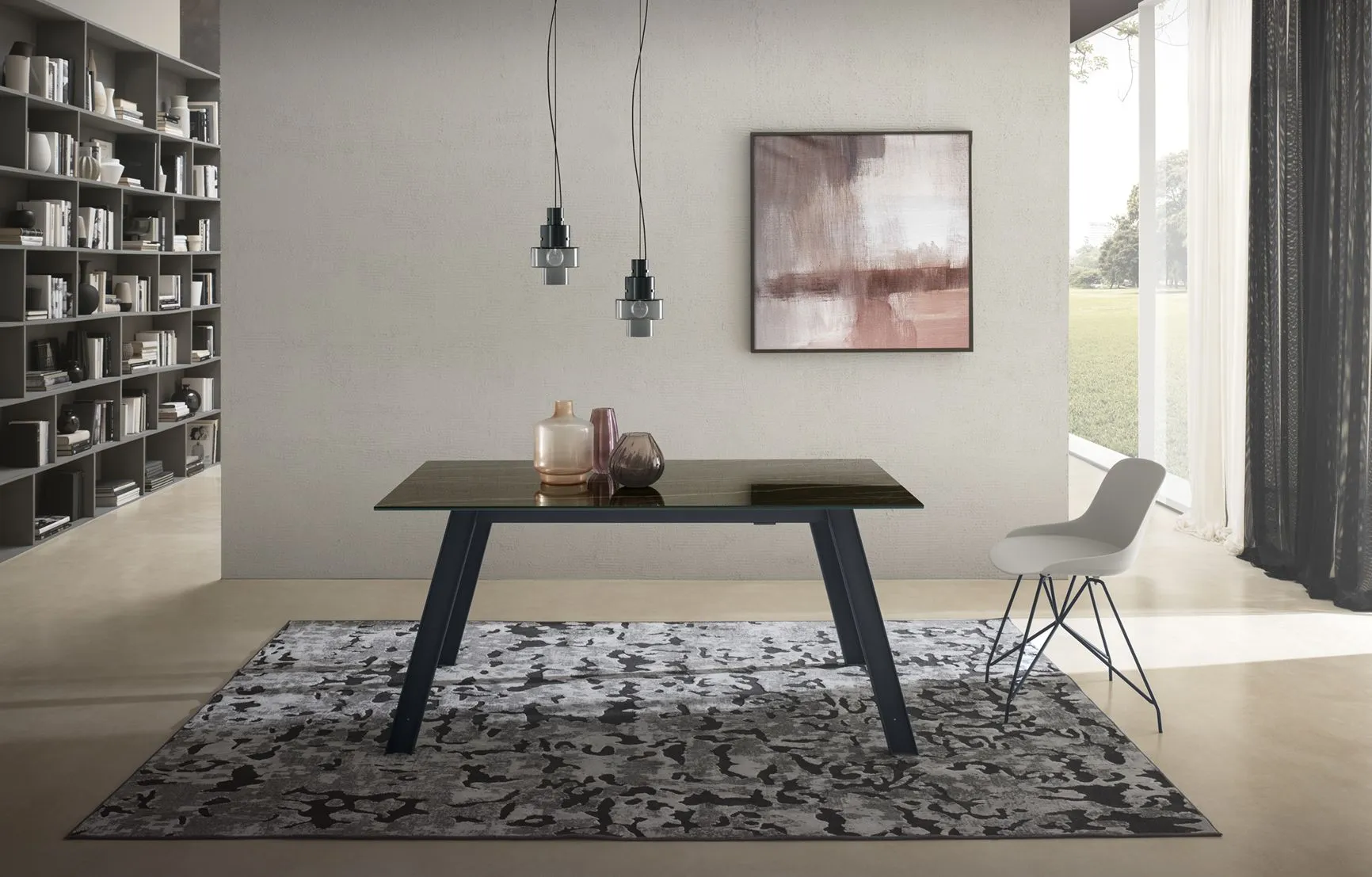 Struttura Metallo verniciato Nero Industry Piano Vetro laccato lucido Antracite Dimensioni 160 X 90 allungabile fino a 260 cm