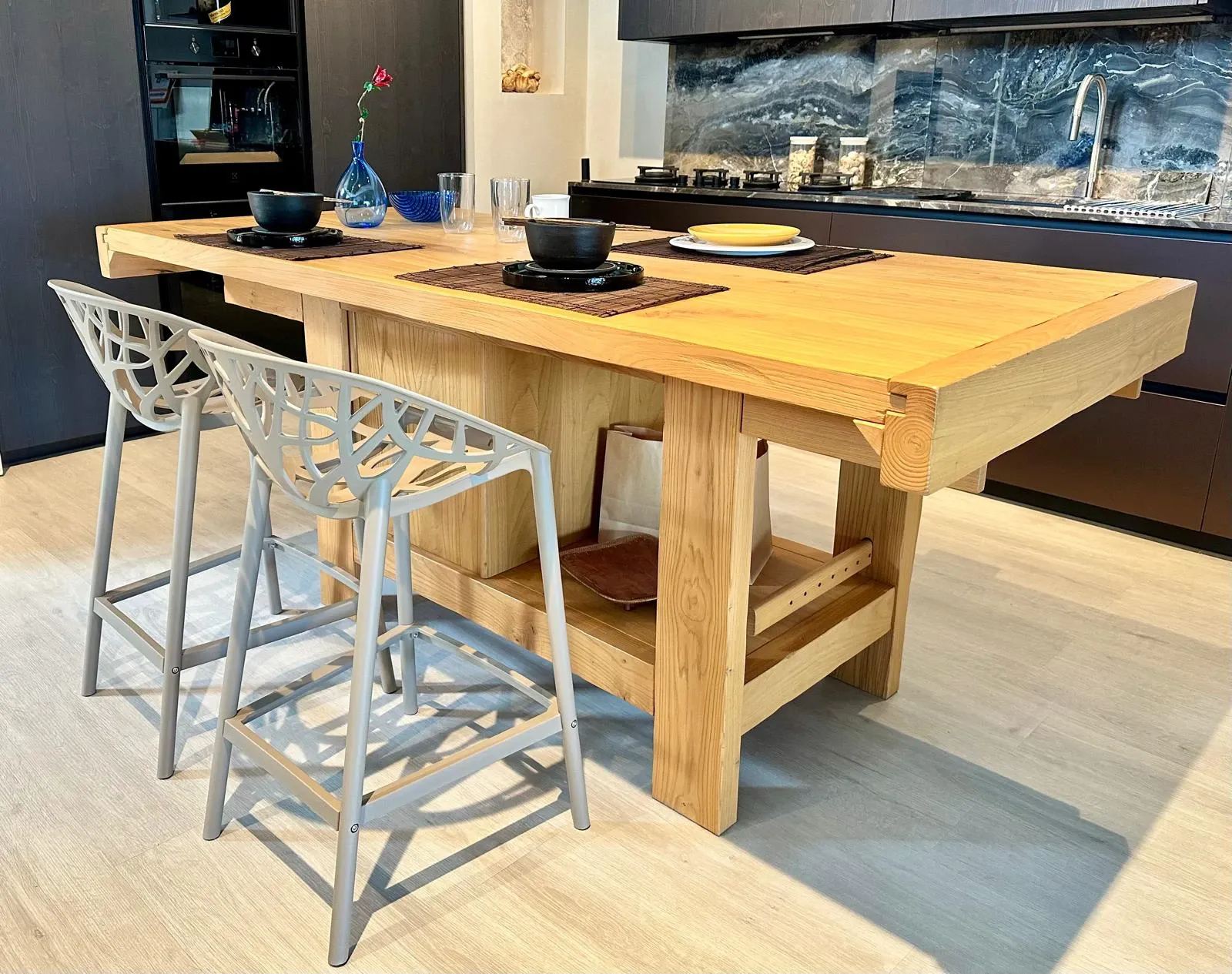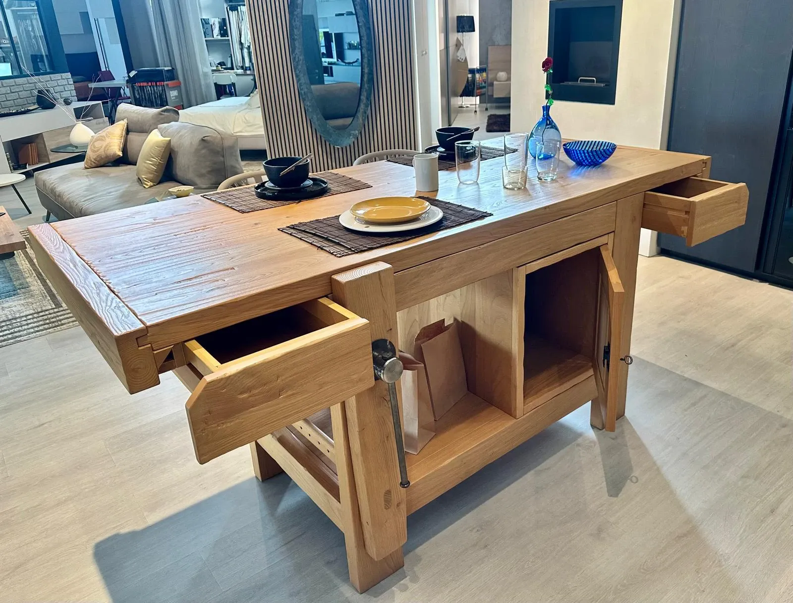 Tavolo, isola o banco lavoro questo articolo versatile nell'utilizzo è un prodotto artigianale su misura realizzato in legno massello di rovere.