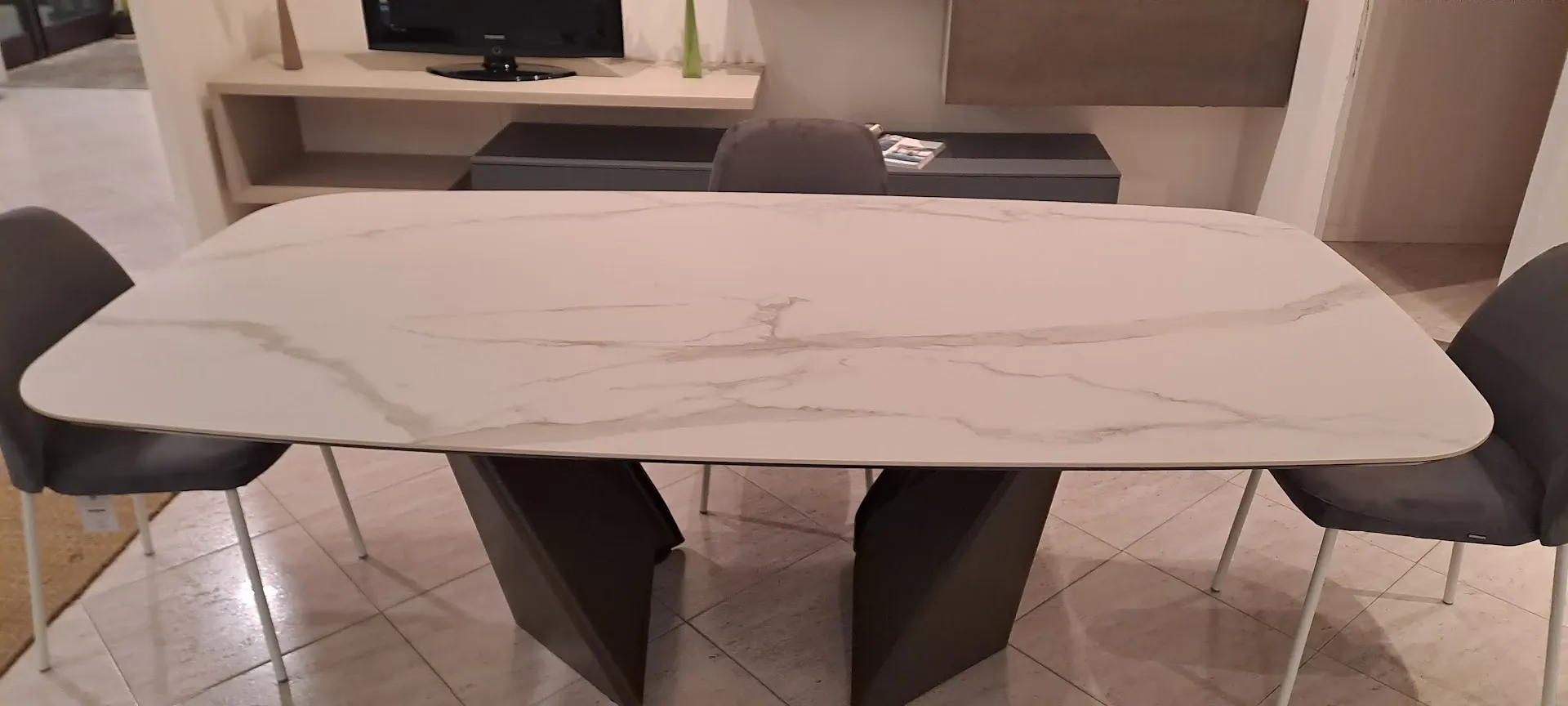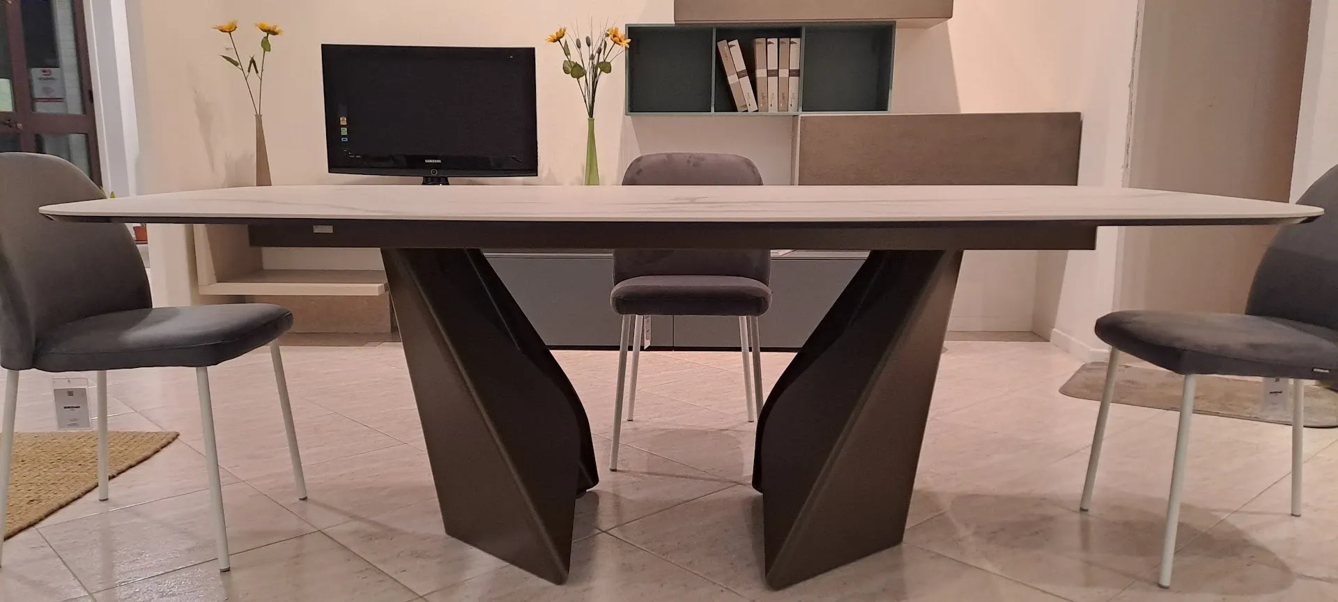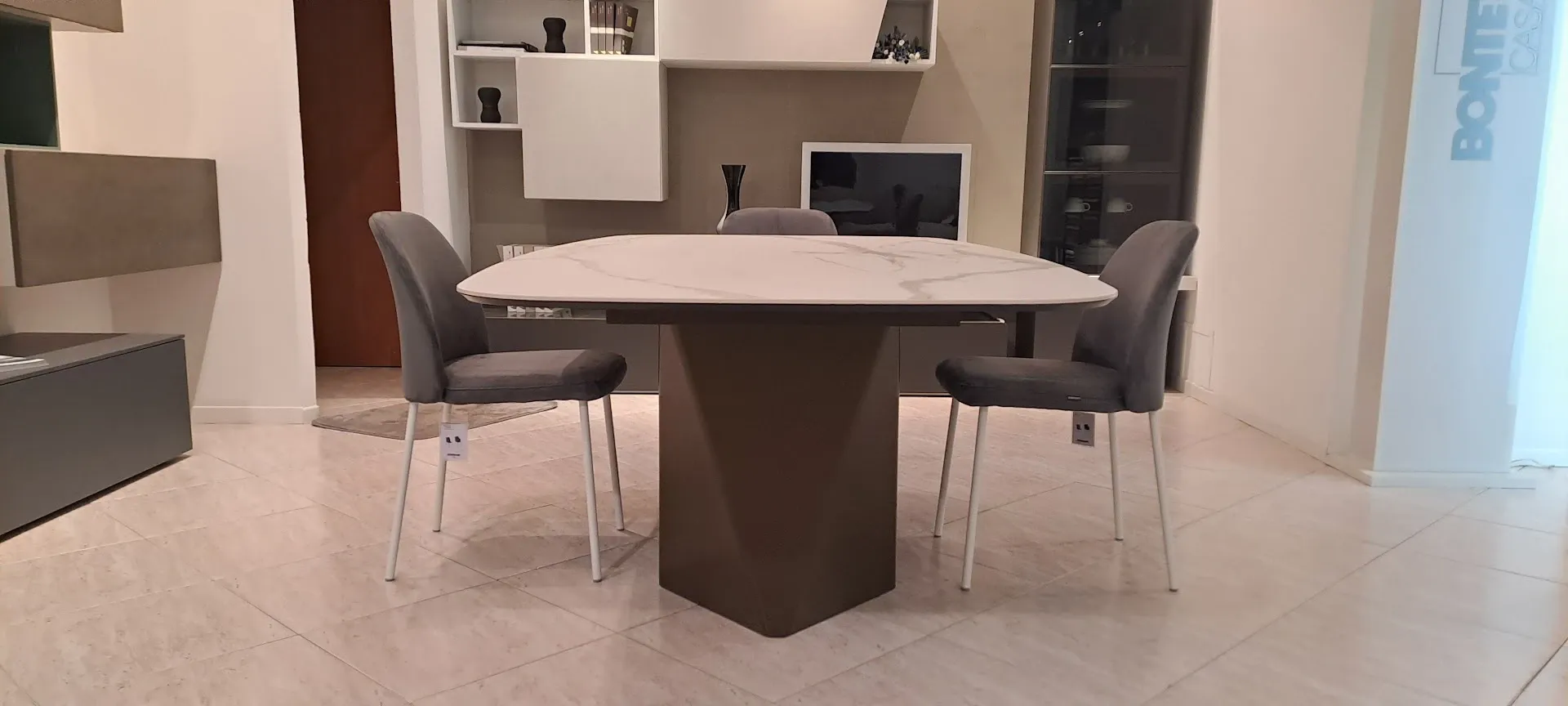 Il Tavolo Kaleido di Bontempi scontato del 32% permette di impreziosire una sala da pranzo o un living mixando valore estetico a doti di ergonomia e sicurezza. Eccellenza e cura dei dettagli connotano la completa gamma di tavoli in Ceramica Bontempi, tra cui anche questo ad un prezzo davvero conveniente, che garantisce sempre la totale contentezza della clientela a progetto terminato.Dettagli tecnici di Kaleido