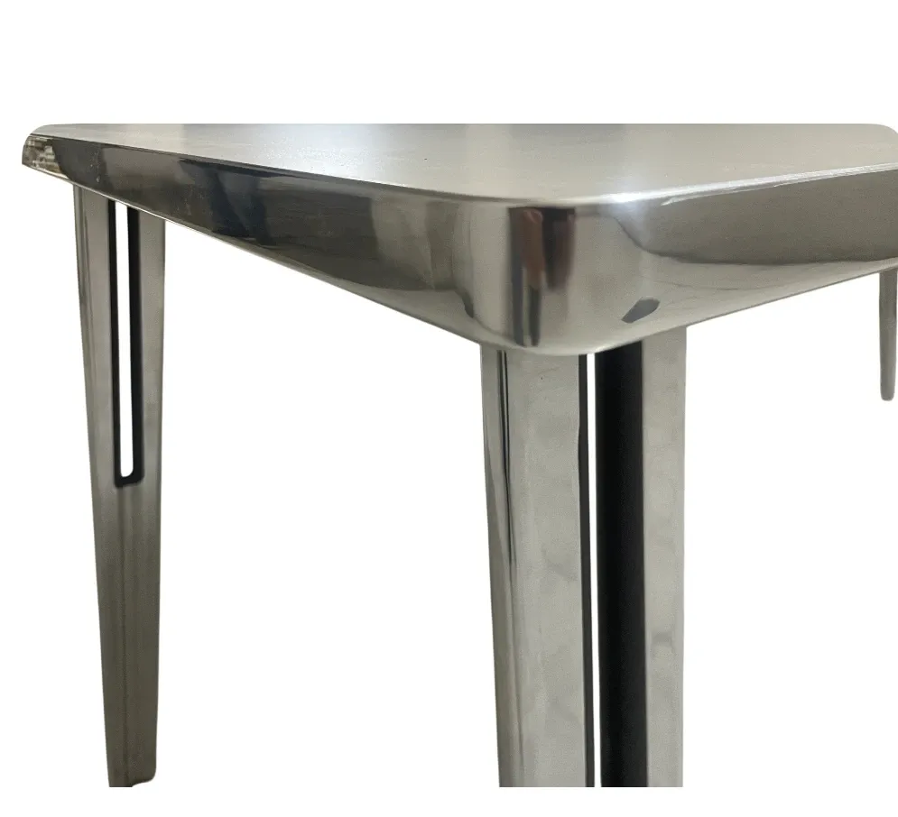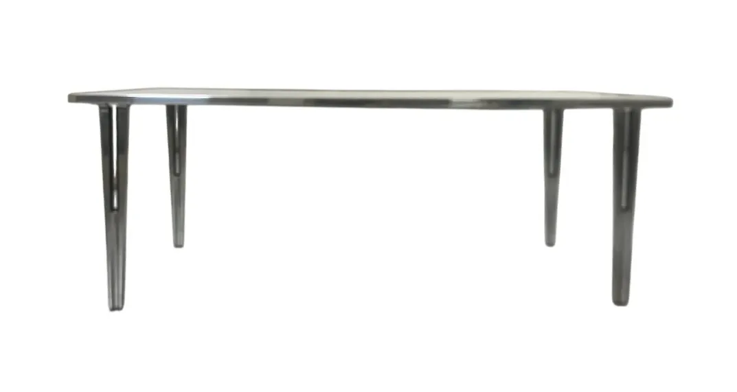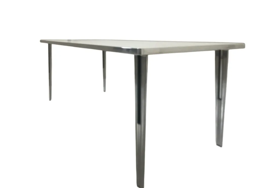 il colore delle gambe dal design molto particolare, realizzate con un sistema di pressofusione di alluminio finitura lucida come il bordo del tavolo.
