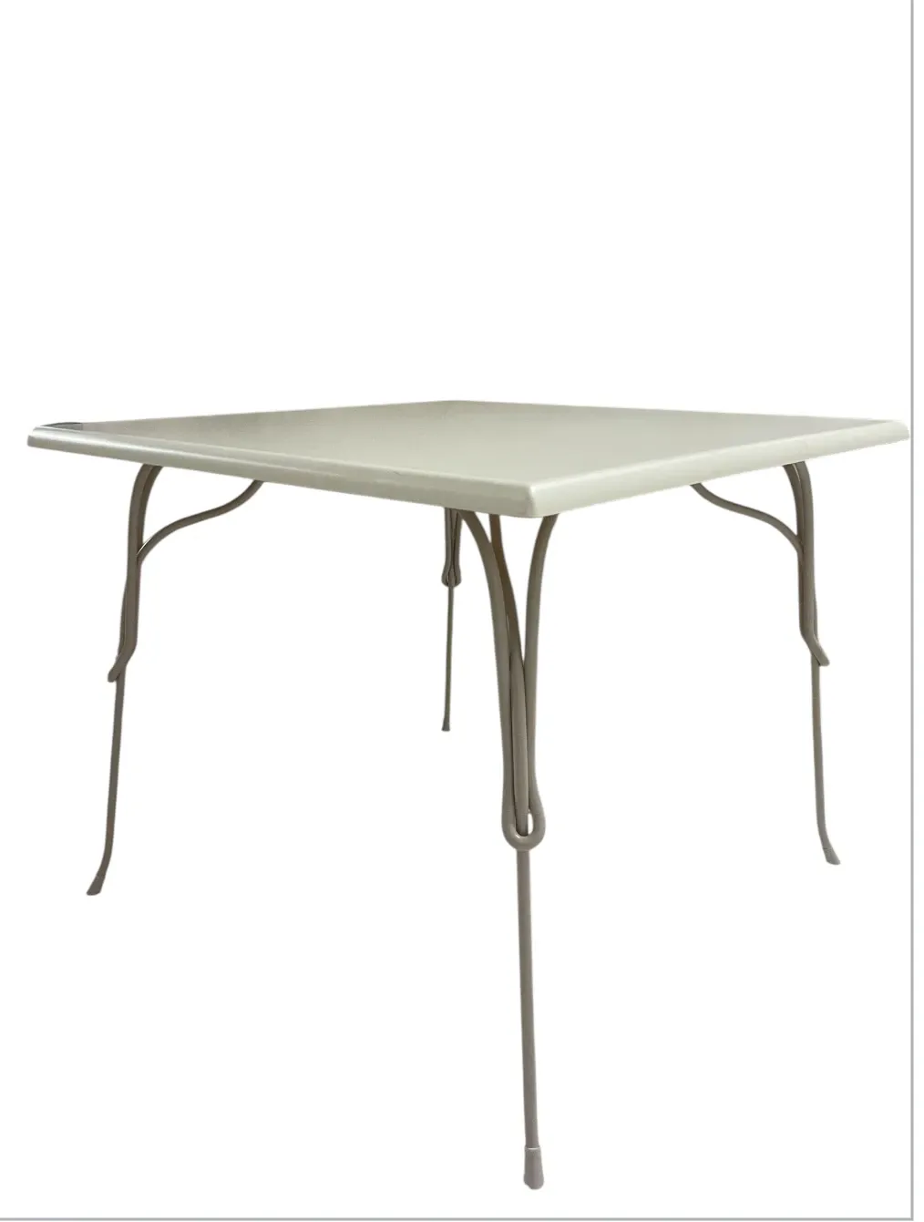 Il tavolo Vigna progettato da Martino Gamper ha un aspetto molto semplice, ricorda i classici tavoli che si trovano campagna, nei vigneti, ma al tempo stesso si distacca nettamente da questo classicismo grazie ai colori particolari in cui è disponibile. Inoltre, l'intreccio nell'acciaio della struttura rimanda ai nodi dei vitigni, e da qui deriva infatti il nome. Dimensioni: 90X90 H 73 cm. Gambe in tondino di acciaio trattato cataforesi e verniciato poliestere, Disponibili nei seguenti colori:Grigio caldo. Piano in Werzalit disponibile nei seguenti colori: Bianco.